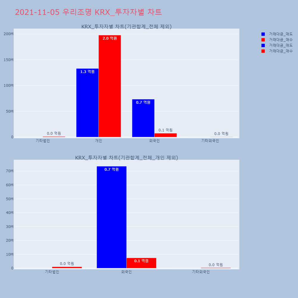 | 투자기관 | 거래량_매도 | 거래량_매수 | 거래량_순매수 | 거래대금_매도 | 거래대금_매수 | 거래대금_순매수 |