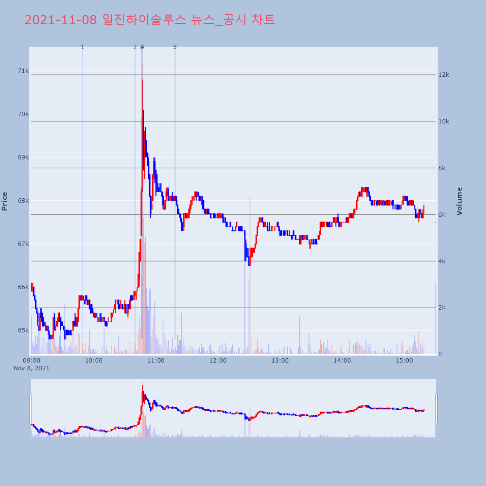| 3 | 일진하이솔루스, 유럽 수출용 수소연료저장장치 개발▶ 하이스탁론, 선취수수료 없는 월 0.2%대 최저금리 | 이데일리 | 일진하이솔루스 | 2021-11-08 10:46:12 |