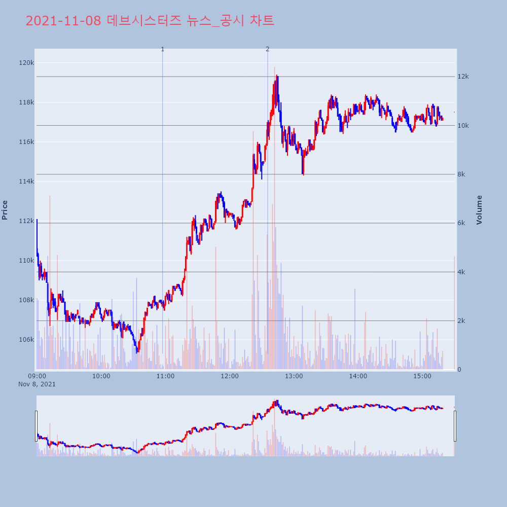| 6 | 데브시스터즈(주) 단기과열종목(3거래일 단일가매매) 지정 | KOSCOM | 2021.09.17 |