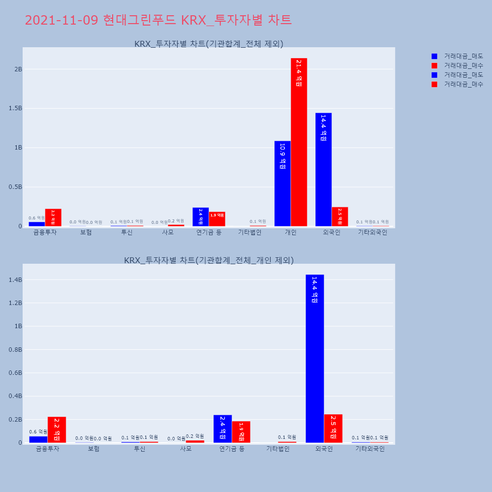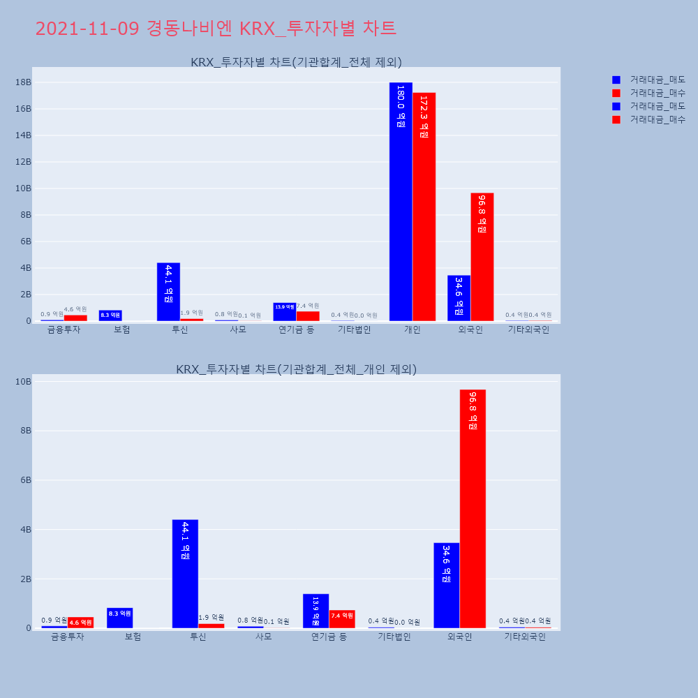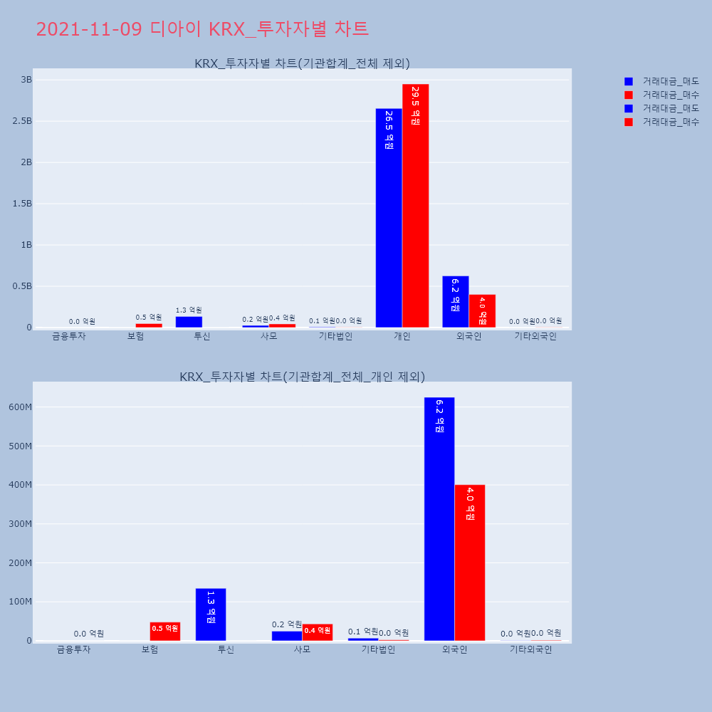 | 투자기관 | 거래량_매도 | 거래량_매수 | 거래량_순매수 | 거래대금_매도 | 거래대금_매수 | 거래대금_순매수 |