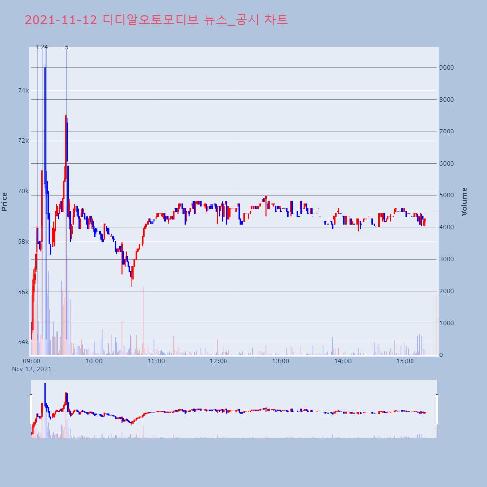 | 2 | 디티알오토모티브, +10.94% VI 발동디티알오토모티브(007340)가 VI가 발동했다. 전일 | 조선경제 | 디티알오토모티브 | 2021-11-12 09:10:45 |