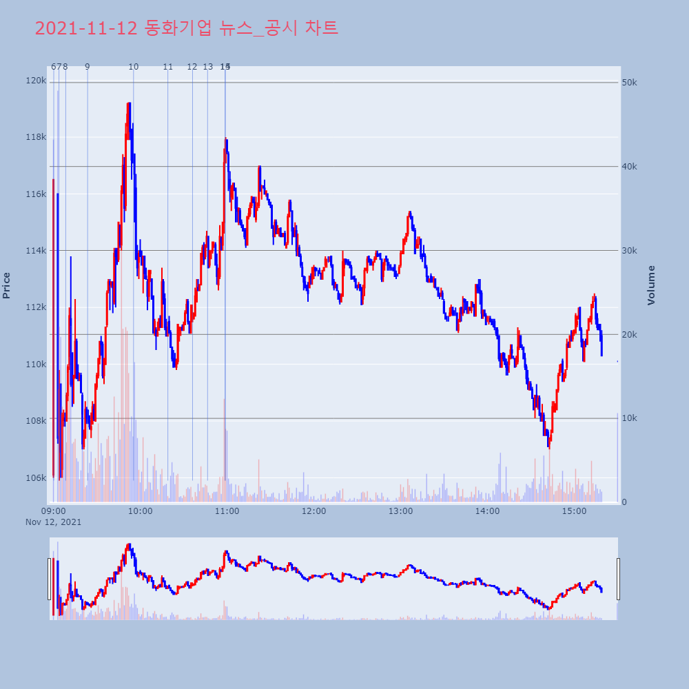 | 11 | [장초반 인기 검색 종목 PICK5] - 동화기업, 에스디바이오센서, 덱스터... 최적의 매매타이밍을 실시간으로 전송하여 투자자들에게 도 | 파이낸셜 | HMM | 2021-11-12 10:19:06 |