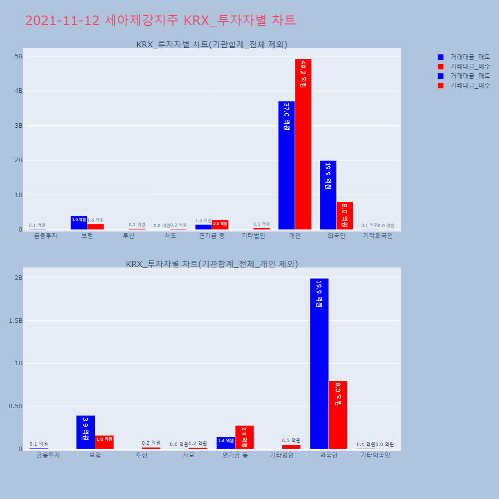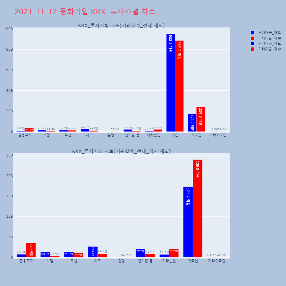 | 투자기관 | 거래량_매도 | 거래량_매수 | 거래량_순매수 | 거래대금_매도 | 거래대금_매수 | 거래대금_순매수 |