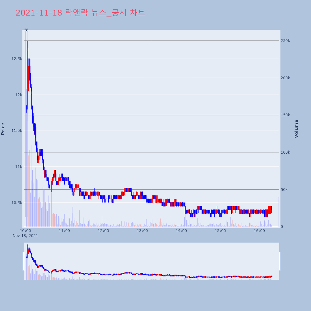 | 5 | 락앤락, 0.00% VI 발동락앤락(115390)이 VI가 발동했다. 현재 9,95 | 조선경제 | 락앤락 | 2021-11-18 10:00:11 |