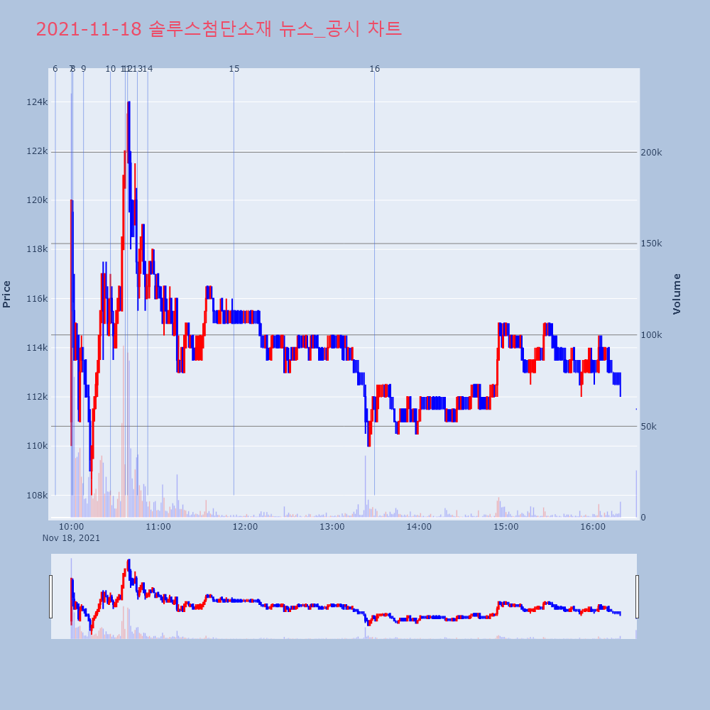 | 16 | [특징주] 솔루스첨단소재, 글로벌 전기차 업체와 계약설에 급등 제목 : [특징주] 솔루스첨단소재, 글로벌 전기차 업체 | 인포스탁 | 솔루스첨단소재 | 2021-11-18 13:29:18 |