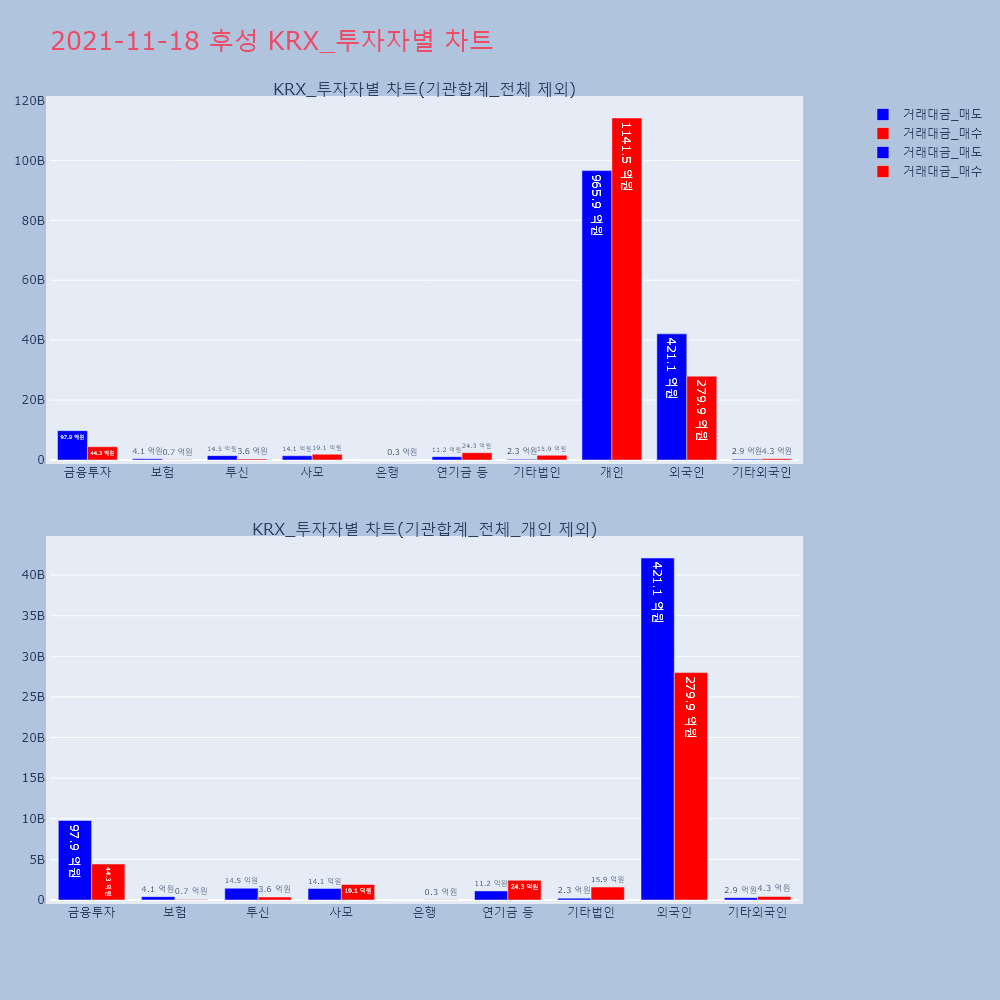 | 투자기관 | 거래량_매도 | 거래량_매수 | 거래량_순매수 | 거래대금_매도 | 거래대금_매수 | 거래대금_순매수 |