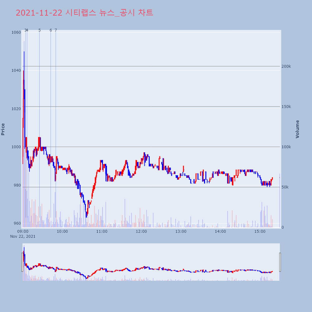 | 4 | [특징주] 시티랩스, 아기상어 버블퐁 프렌즈 해외 진출 박차…↑ 제목 : [특징주] 시티랩스, 아기상어 버블퐁 프렌즈 | 인포스탁 | 시티랩스 | 2021-11-22 09:06:37 |