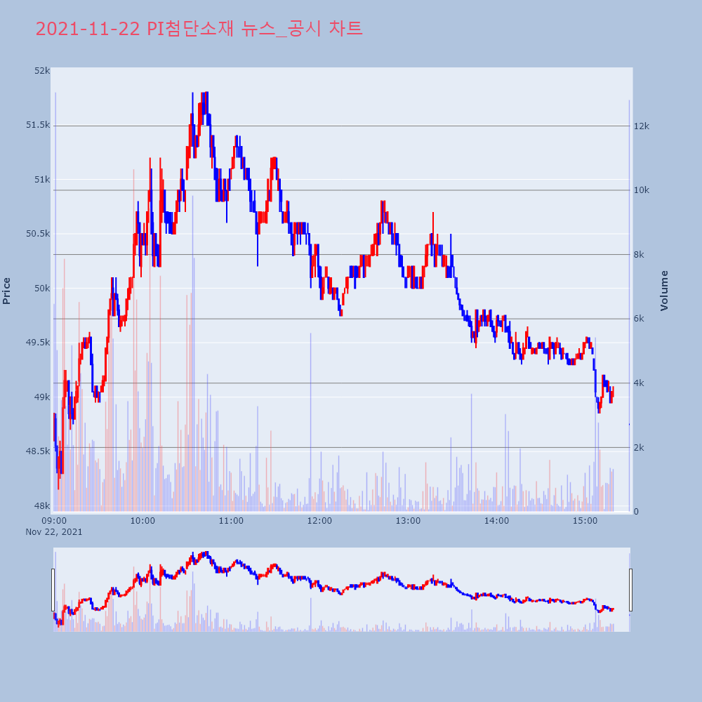 | 4 | [장중수급포착] 피에스케이, 외국인/기관 동시 순매수… 주가 +12.33% [서울=뉴스핌] 로보뉴스 = 22일 10시 15분 현재 | 뉴스핌 | 피에스케이 | 2021-11-22 10:18:10 |