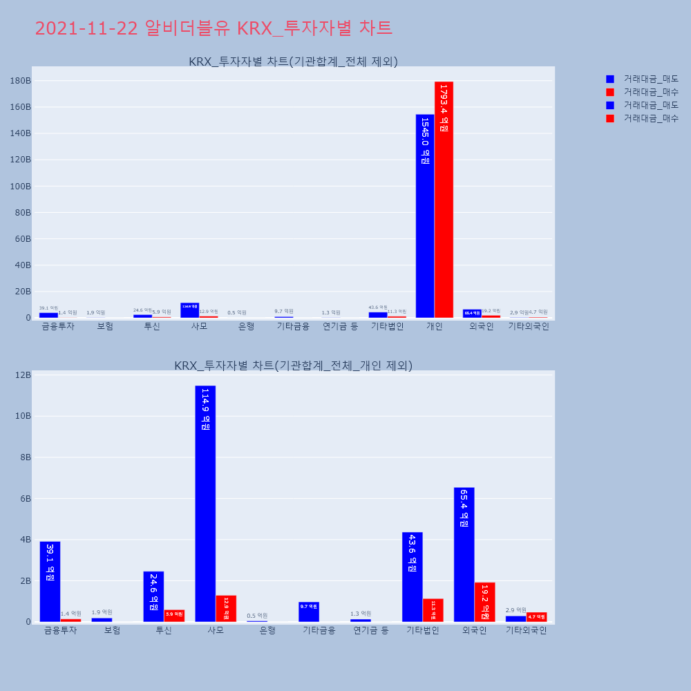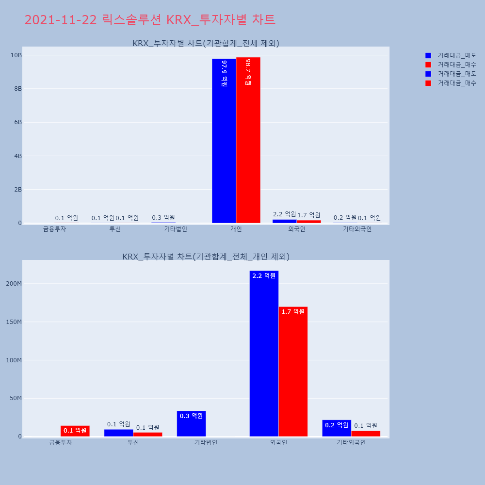 | 투자기관 | 거래량_매도 | 거래량_매수 | 거래량_순매수 | 거래대금_매도 | 거래대금_매수 | 거래대금_순매수 |