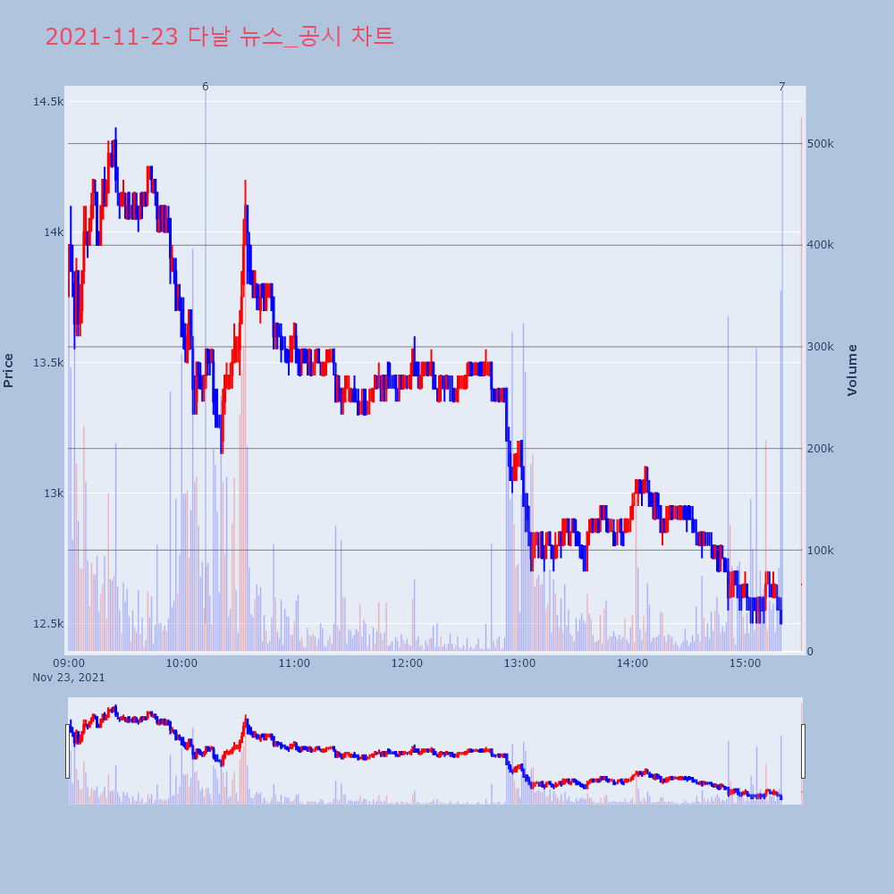 7 | 다날, -13.79% VI 발동다날(064260)이 VI가 발동했다. 전일 대비 13 | 조선경제 | 다날 | 2021-11-23 15:19:50 |