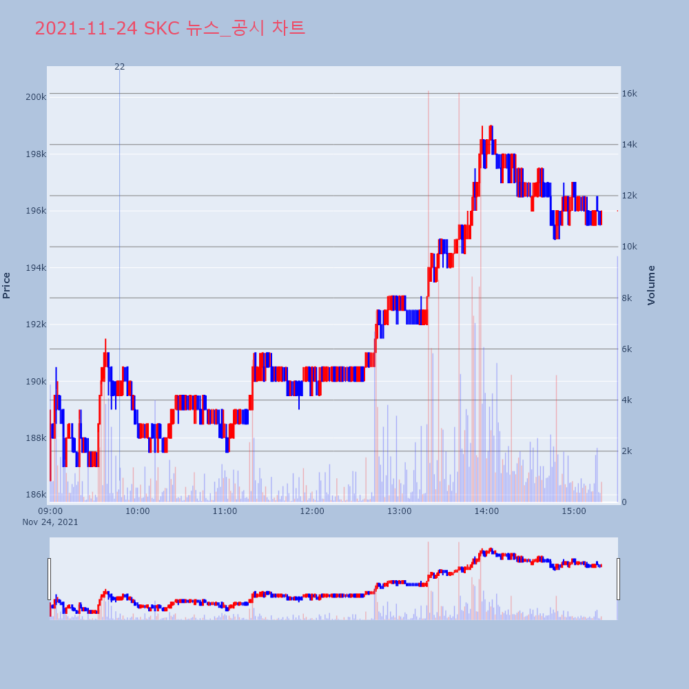 | 18 | SKC, 대상·LX인터내셔널과 친환경 생분해 신소재 합작사 설립▶▶▶ 부자네스탁론, 연2.99% 이자만 내고 4배까지 | MTN | SKC | 2021-11-23 15:41:31 |