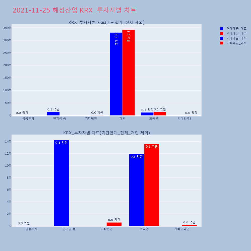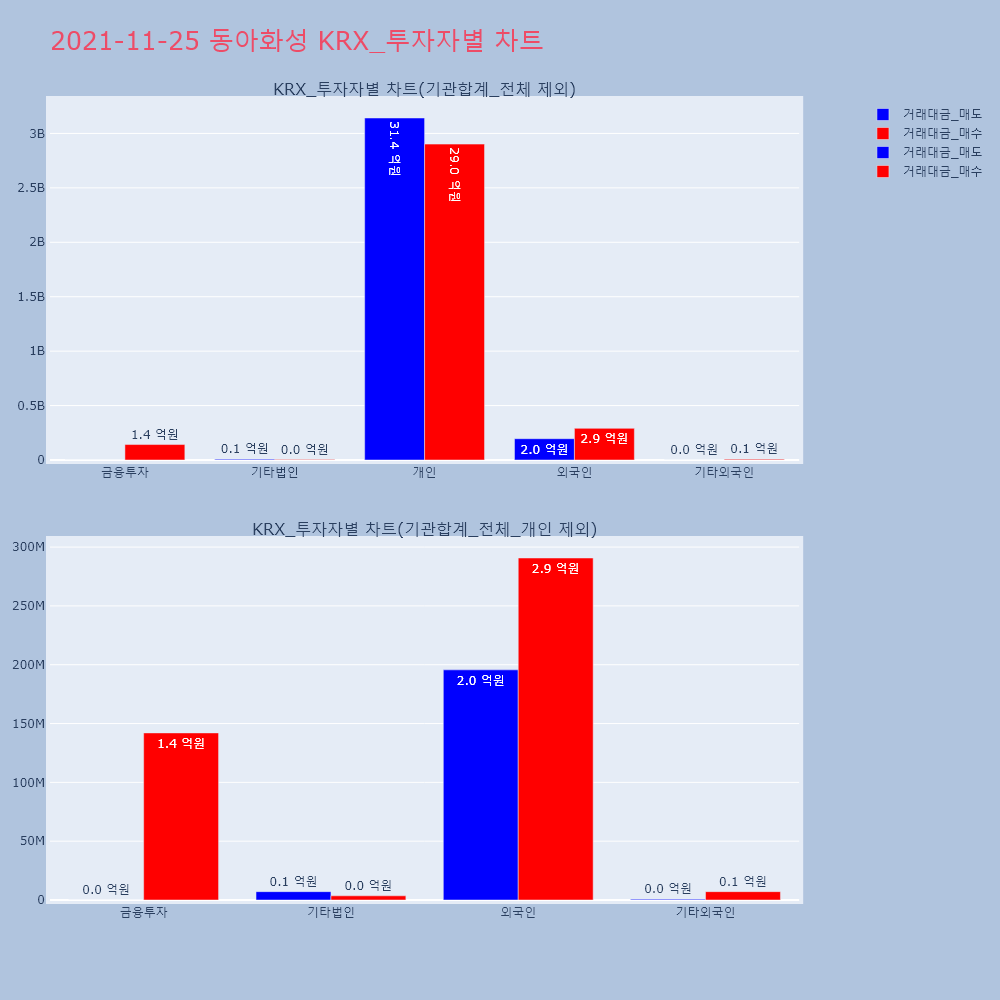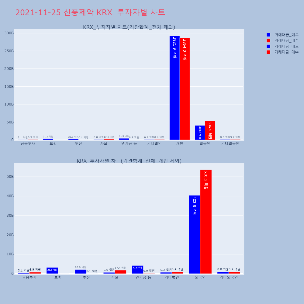 | 투자기관 | 거래량_매도 | 거래량_매수 | 거래량_순매수 | 거래대금_매도 | 거래대금_매수 | 거래대금_순매수 |