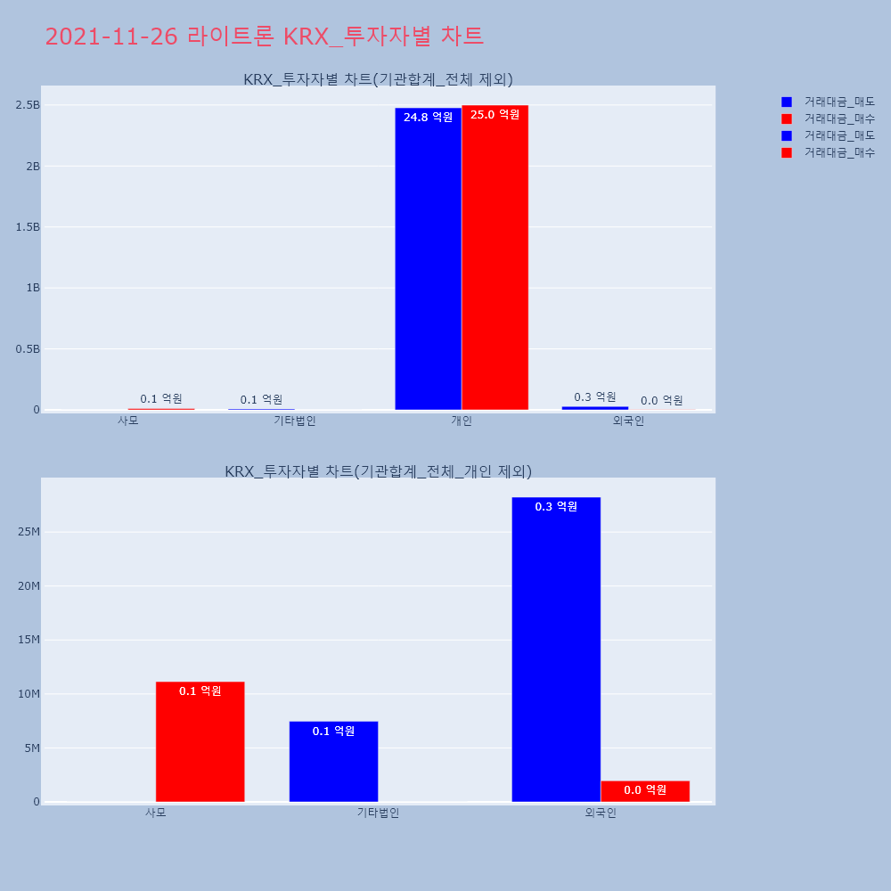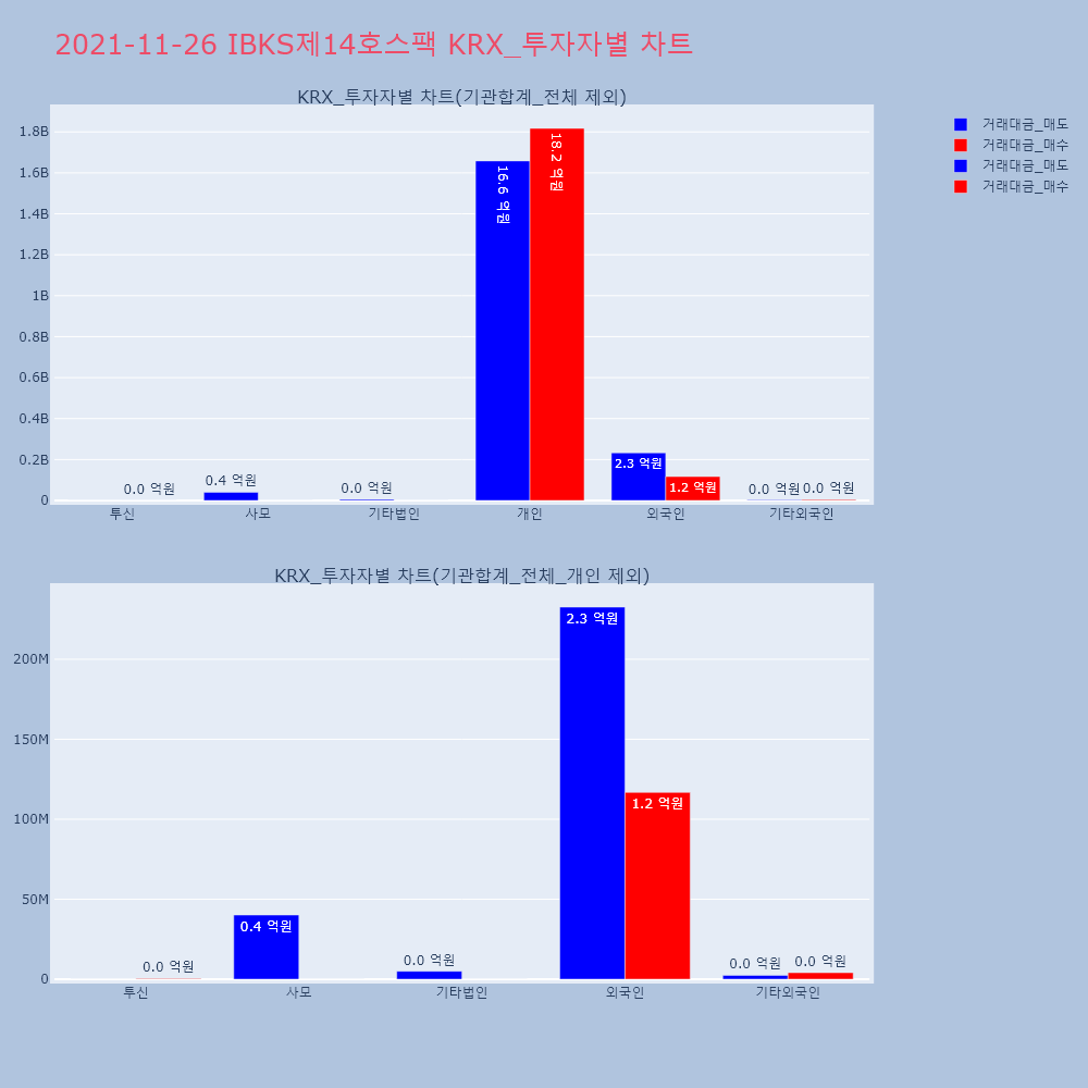 | 투자기관 | 거래량_매도 | 거래량_매수 | 거래량_순매수 | 거래대금_매도 | 거래대금_매수 | 거래대금_순매수 |