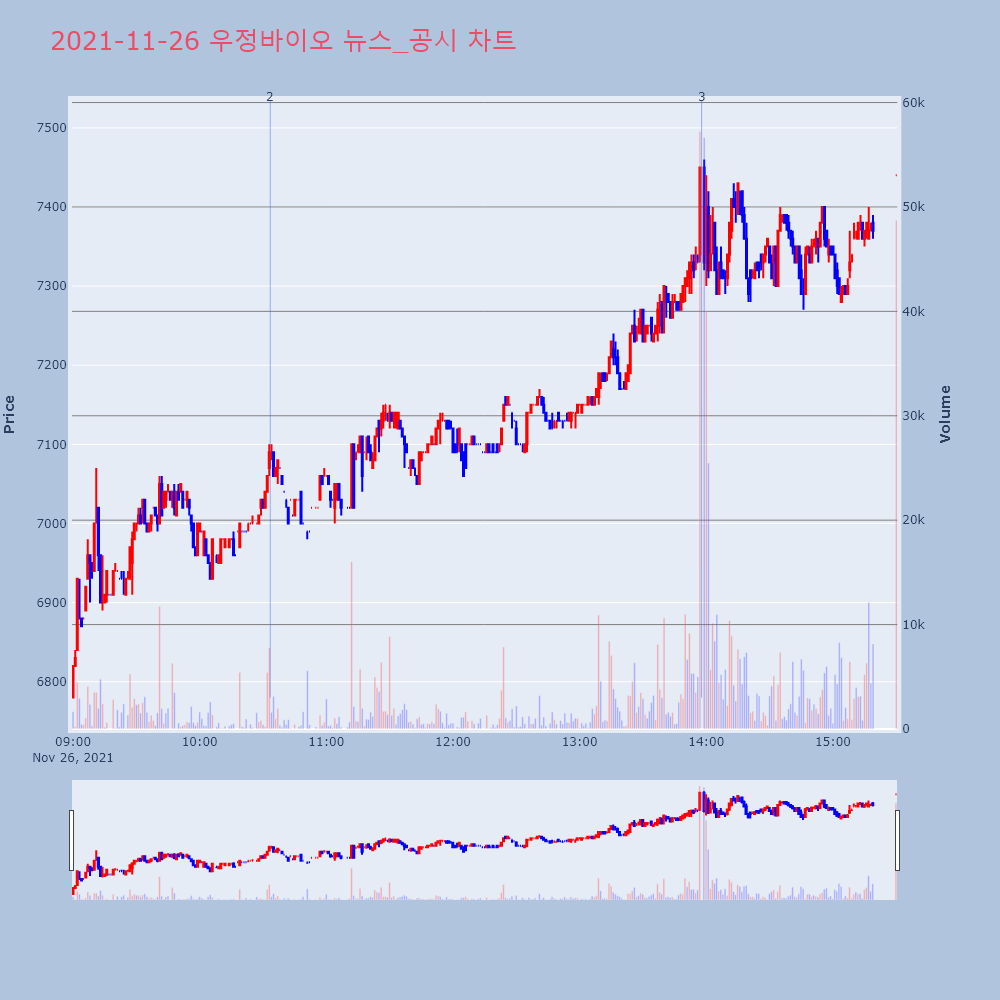 | 3 | 우정바이오, +9.24% VI 발동우정바이오(215380)가 VI가 발동했다. 전일 대비 | 조선경제 | 우정바이오 | 2021-11-26 13:57:47 |
