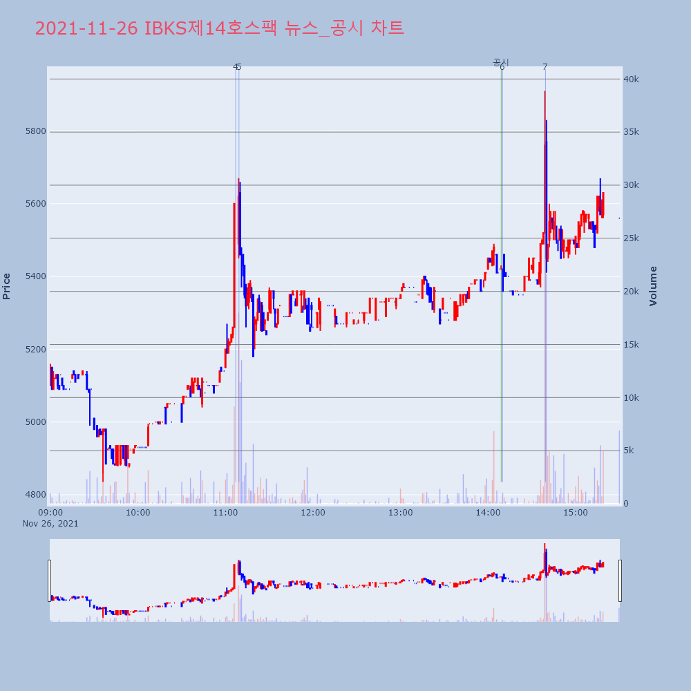 | 4 | IBKS제14호스팩, +7.86% VI 발동IBKS제14호스팩(351320)이 VI가 발동했다. | 조선경제 | IBKS제14호스팩 | 2021-11-26 11:07:00 |