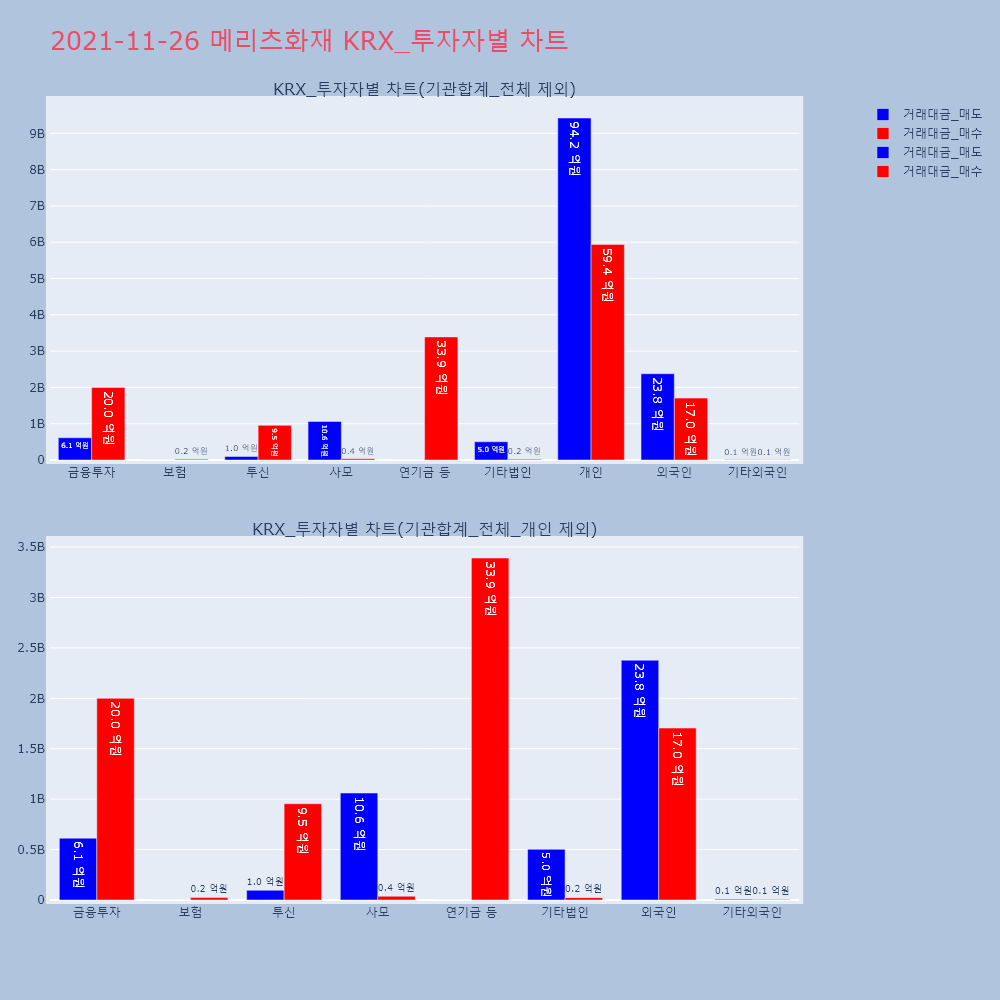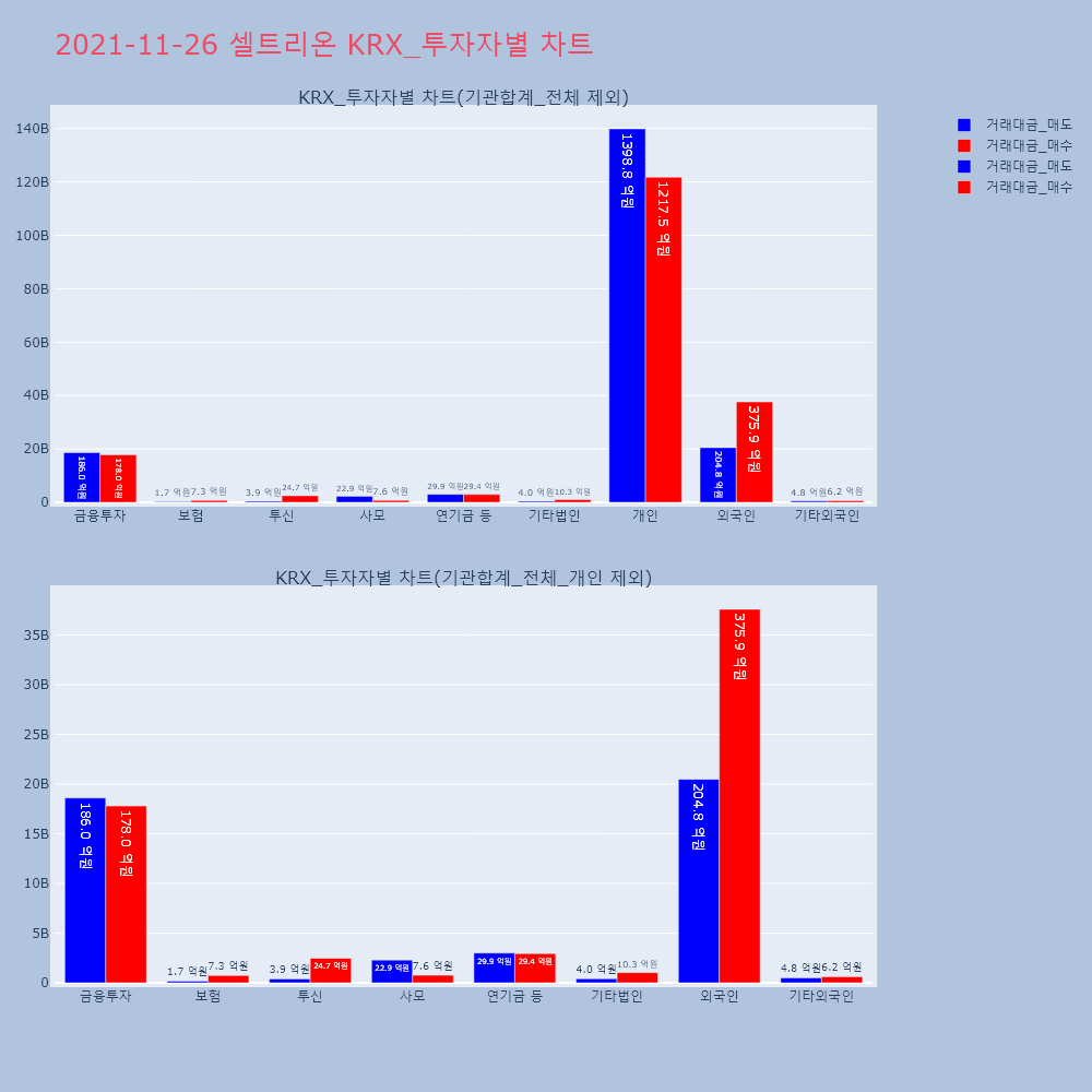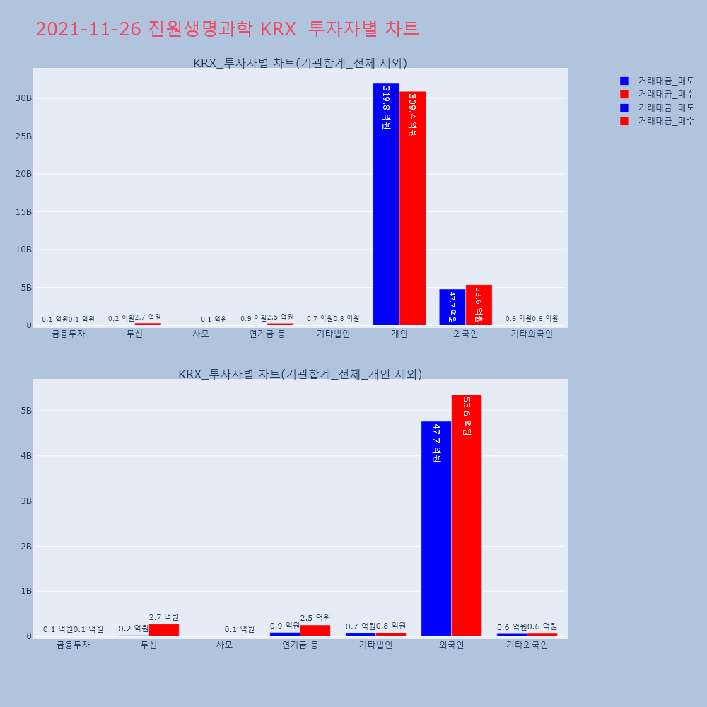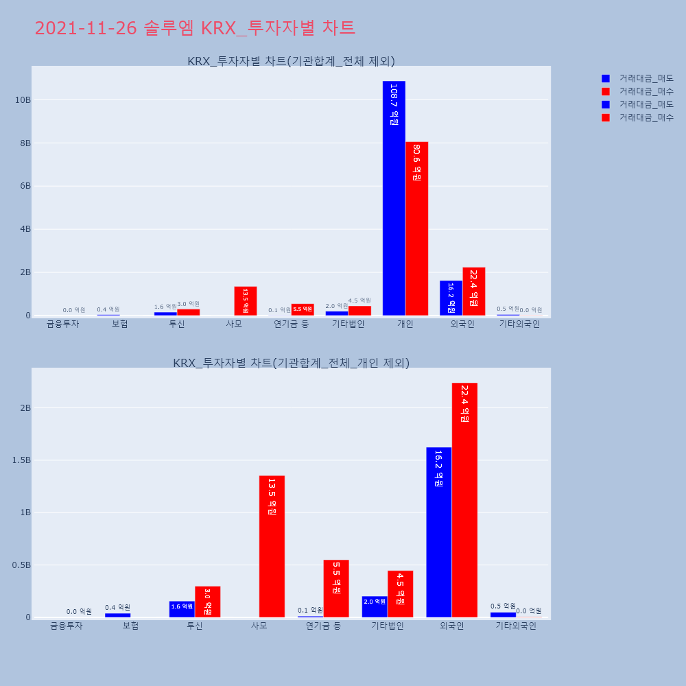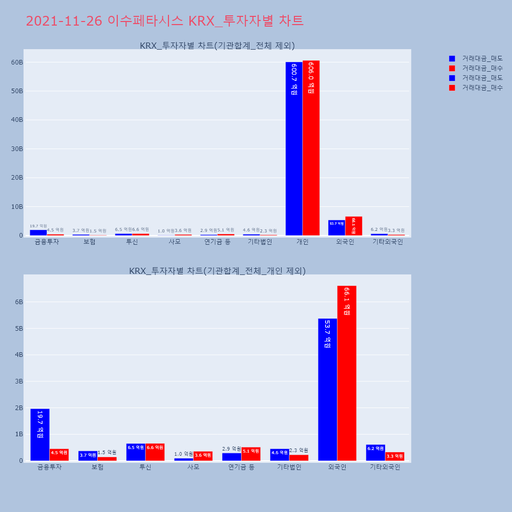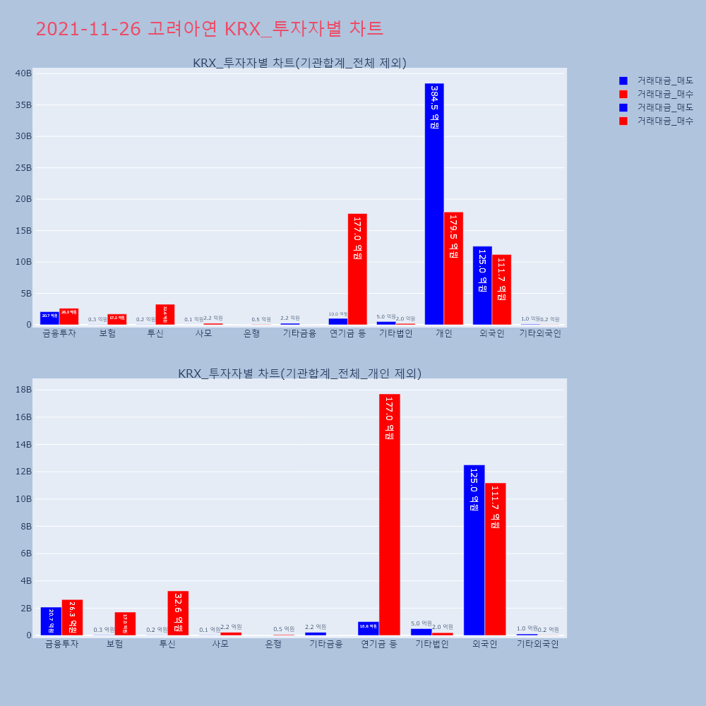 | 투자기관 | 거래량_매도 | 거래량_매수 | 거래량_순매수 | 거래대금_매도 | 거래대금_매수 | 거래대금_순매수 |