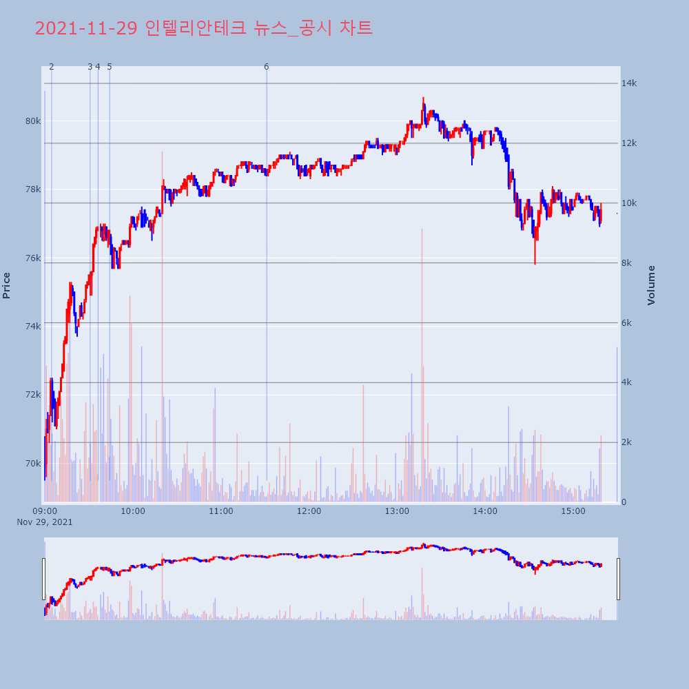 | 4 | 인텔리안테크, +5.49% VI 발동인텔리안테크(189300)가 VI가 발동했다. 전일 대 | 조선경제 | 인텔리안테크 | 2021-11-29 09:36:17 |