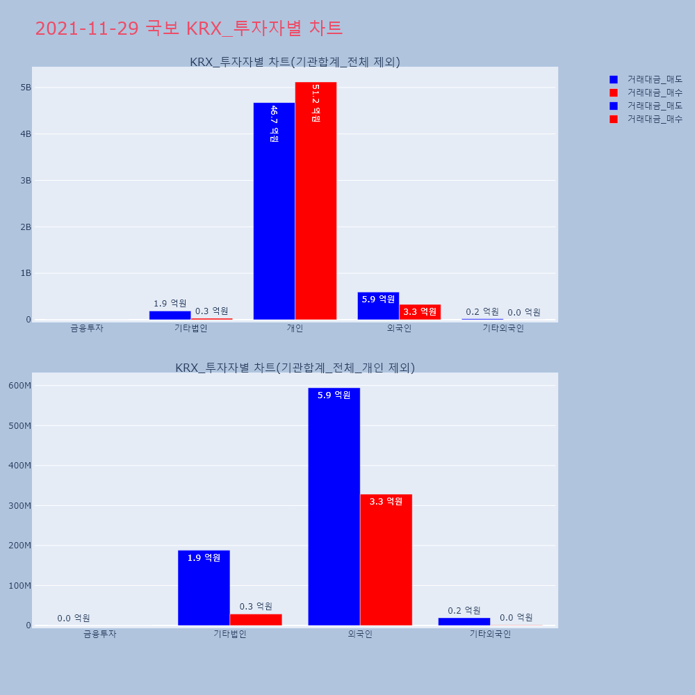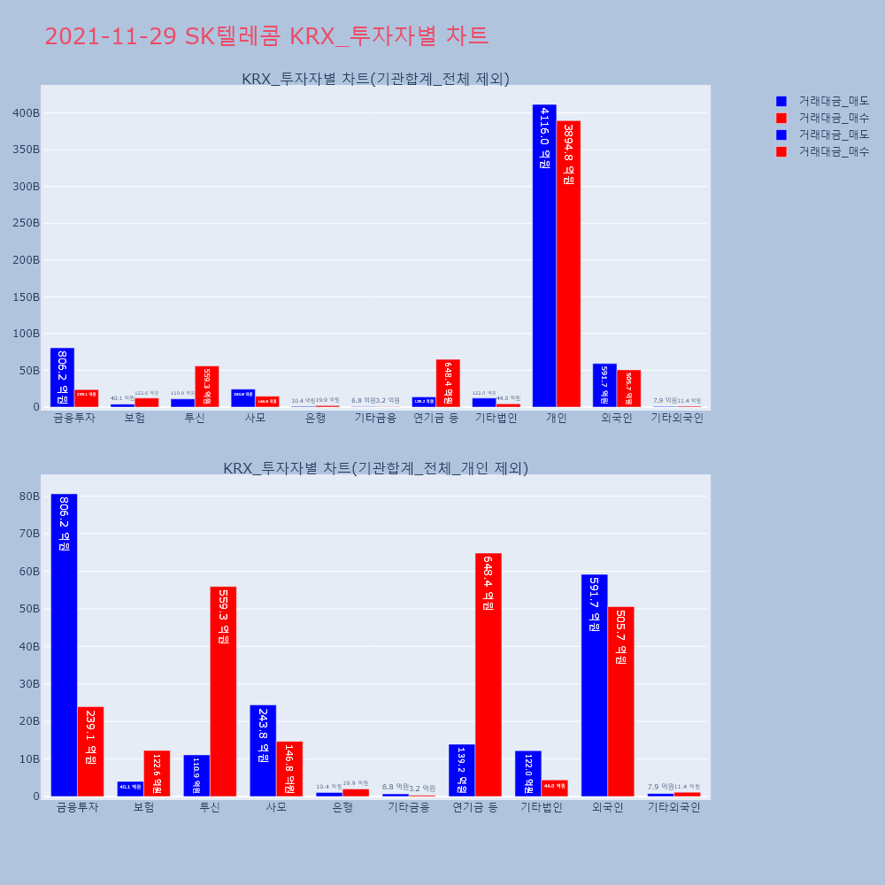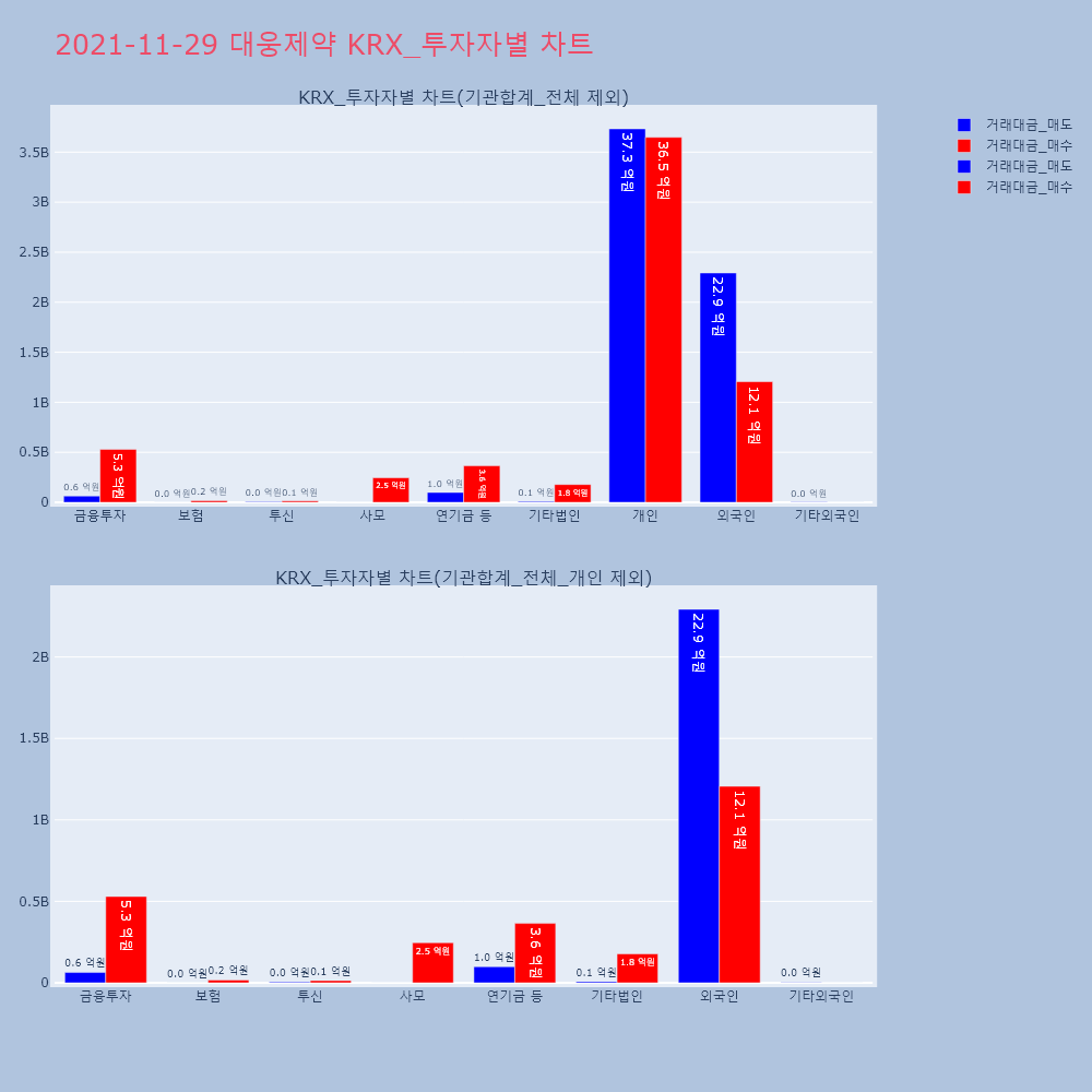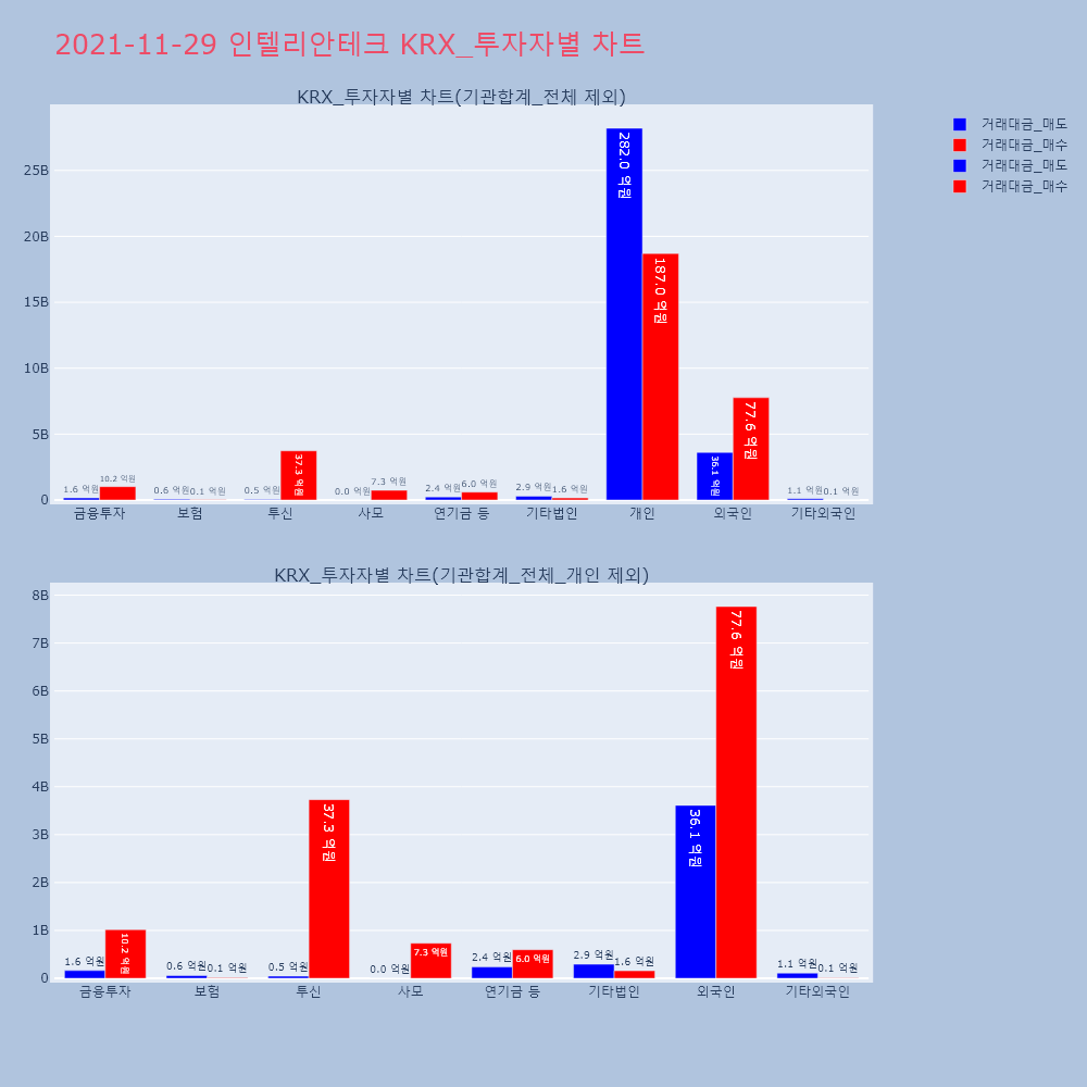 | 투자기관 | 거래량_매도 | 거래량_매수 | 거래량_순매수 | 거래대금_매도 | 거래대금_매수 | 거래대금_순매수 |