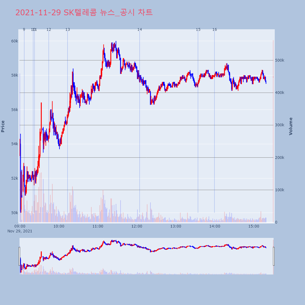 | 14 | SK텔레콤, 변경상장 후 주가 8%대 급등[이투데이/권태성 기자(tskwon@etoday.co. | 이투데이 | SK텔레콤 | 2021-11-29 12:04:24 |