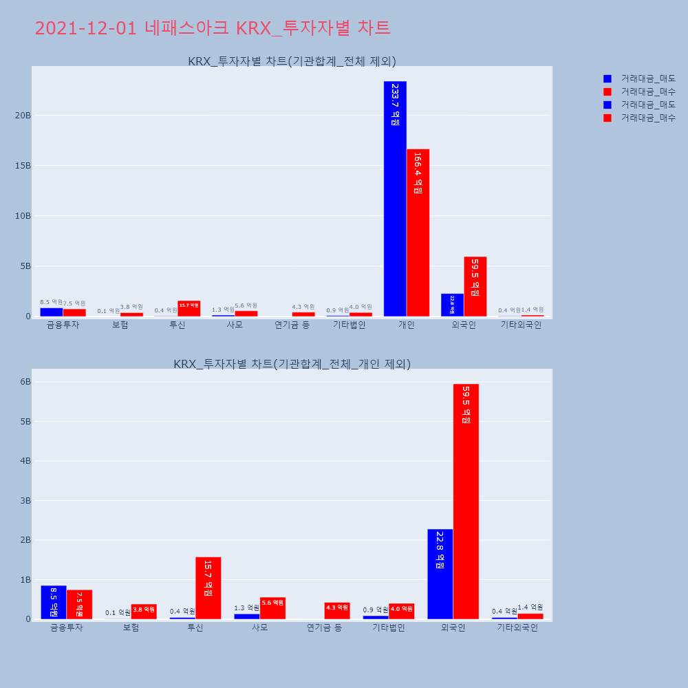 | 투자기관 | 거래량_매도 | 거래량_매수 | 거래량_순매수 | 거래대금_매도 | 거래대금_매수 | 거래대금_순매수 |