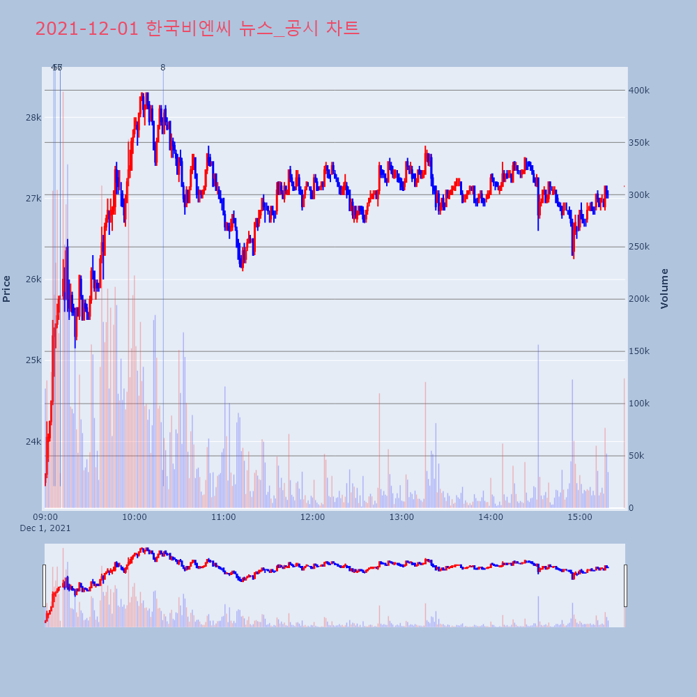 10 | 한국비엔씨, 2천억원 주주배정 유상증자 결정한국비엔씨, 2천억원 주주배정 유상증자 결정(서울=연합 | 연합뉴스 | 한국비엔씨 | 2021-12-01 16:41:58 |