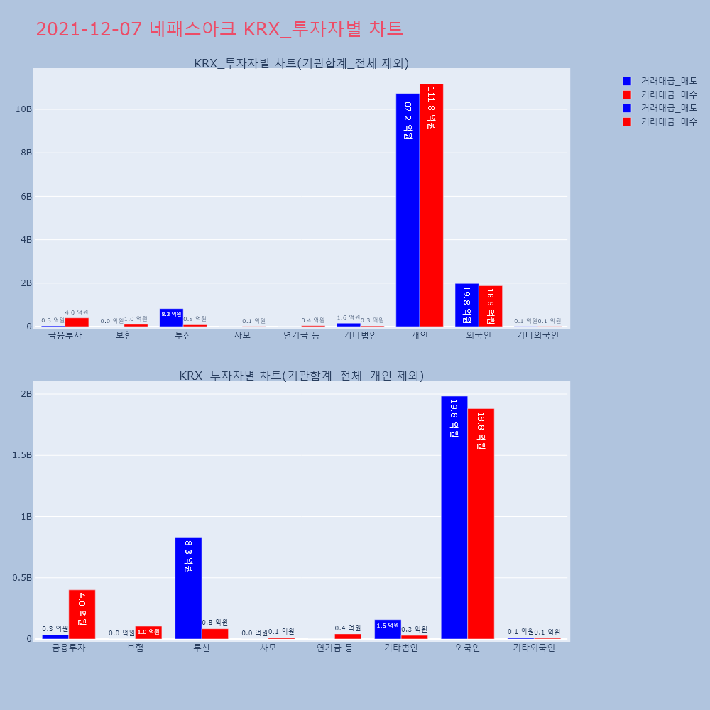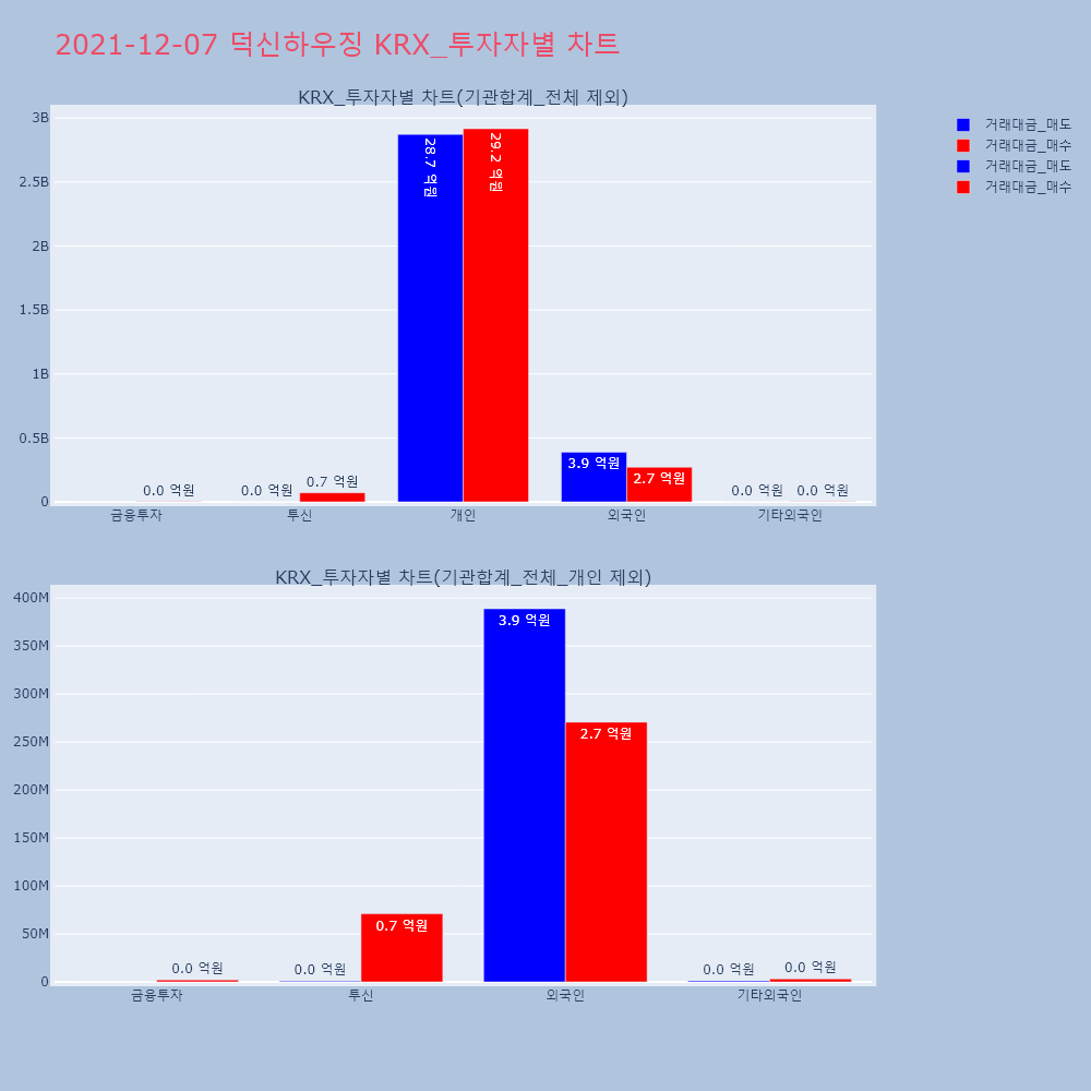 | 투자기관 | 거래량_매도 | 거래량_매수 | 거래량_순매수 | 거래대금_매도 | 거래대금_매수 | 거래대금_순매수 |