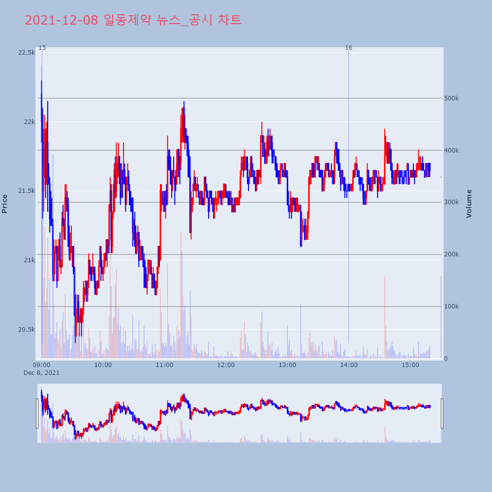 | 5 | 일동제약, +10.54% VI 발동일동제약(249420)이 VI가 발동했다. 전일 대비 | 조선경제 | 일동제약 | 2021-12-07 13:33:36 |