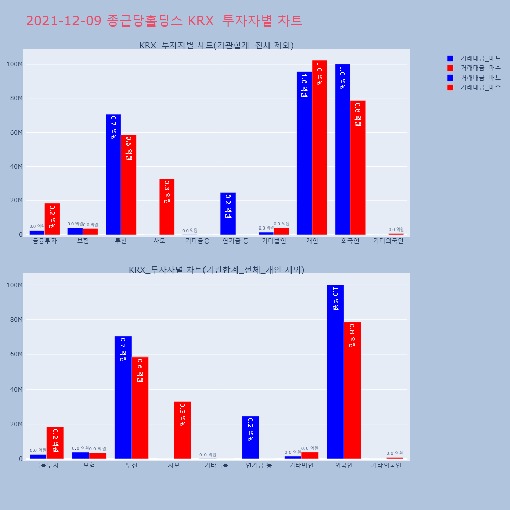 | 투자기관 | 거래량_매도 | 거래량_매수 | 거래량_순매수 | 거래대금_매도 | 거래대금_매수 | 거래대금_순매수 |