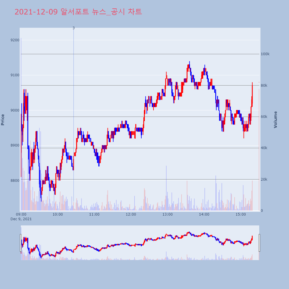 | 2 | 알서포트, +10.28% VI 발동알서포트(131370)가 VI가 발동했다. 전일 대비 | 조선경제 | 알서포트 | 2021-12-08 14:06:41 |