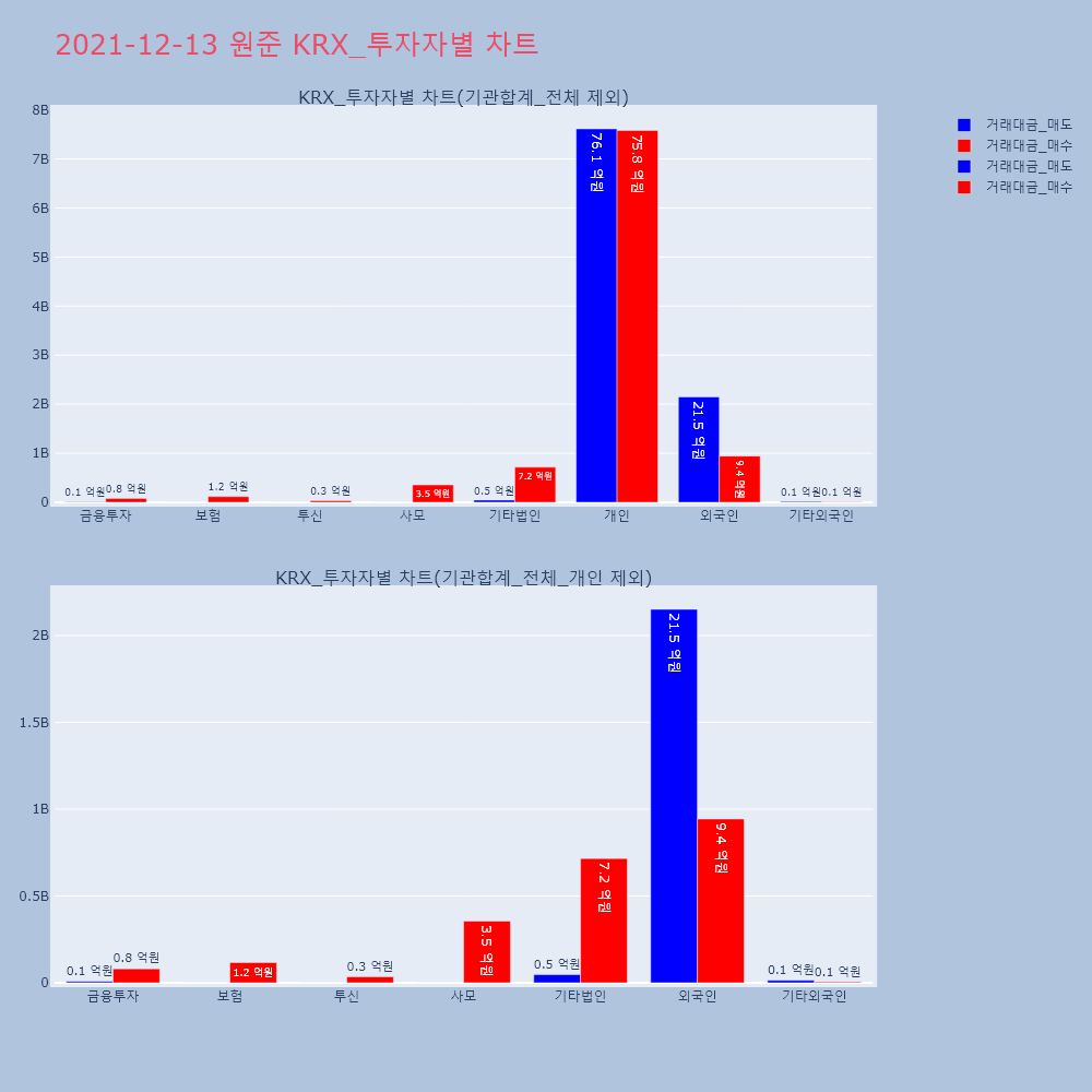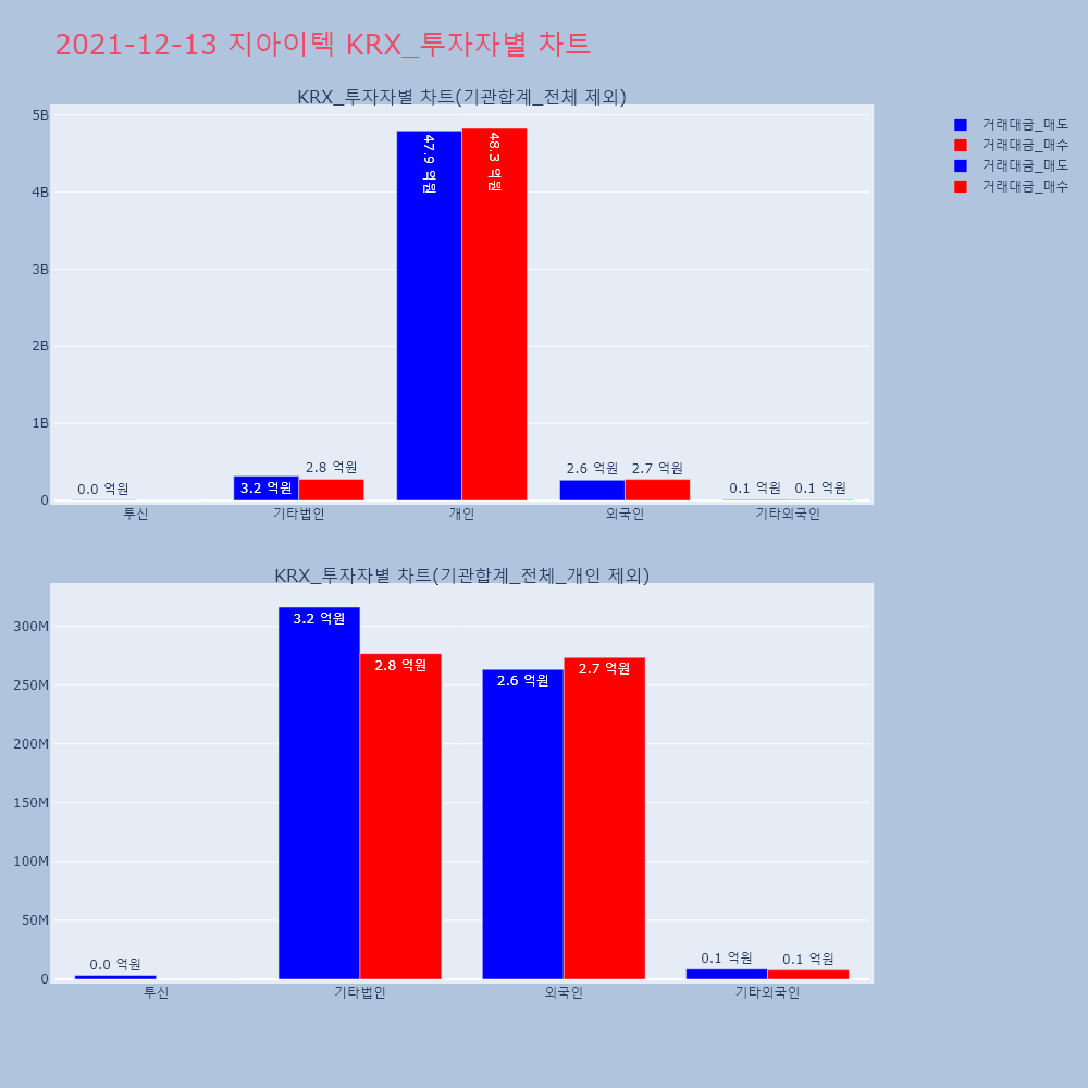 | 투자기관 | 거래량_매도 | 거래량_매수 | 거래량_순매수 | 거래대금_매도 | 거래대금_매수 | 거래대금_순매수 |