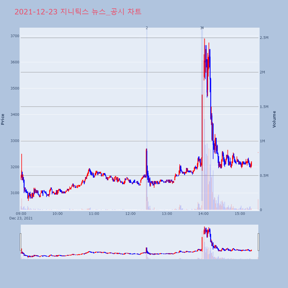 | 4 | 지니틱스, +10.85% VI 발동지니틱스(303030)가 VI가 발동했다. 전일 대비 | 조선경제 | 지니틱스 | 2021-12-23 13:58:43 |