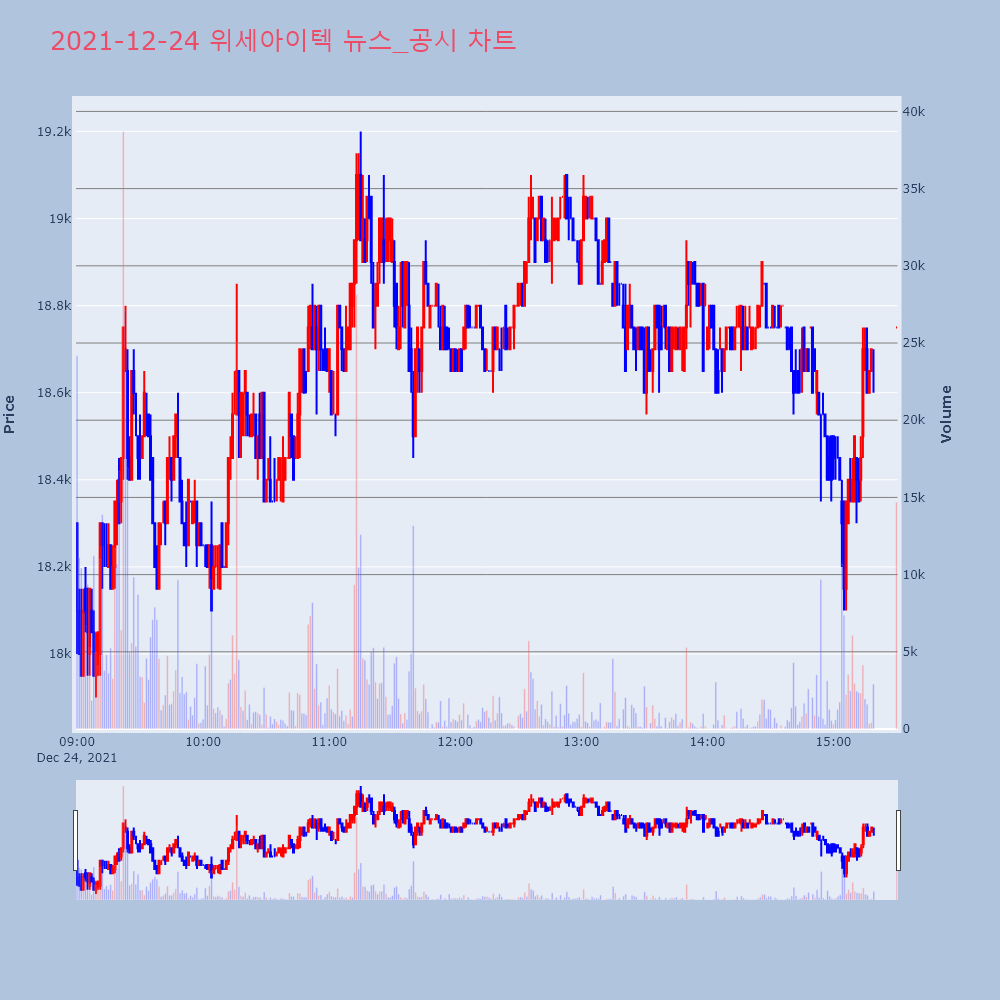 | 5 | 위세아이텍, +11.22% VI 발동위세아이텍(065370)이 VI가 발동했다. 전일 대비 | 조선경제 | 위세아이텍 | 2021-12-23 09:55:51 |