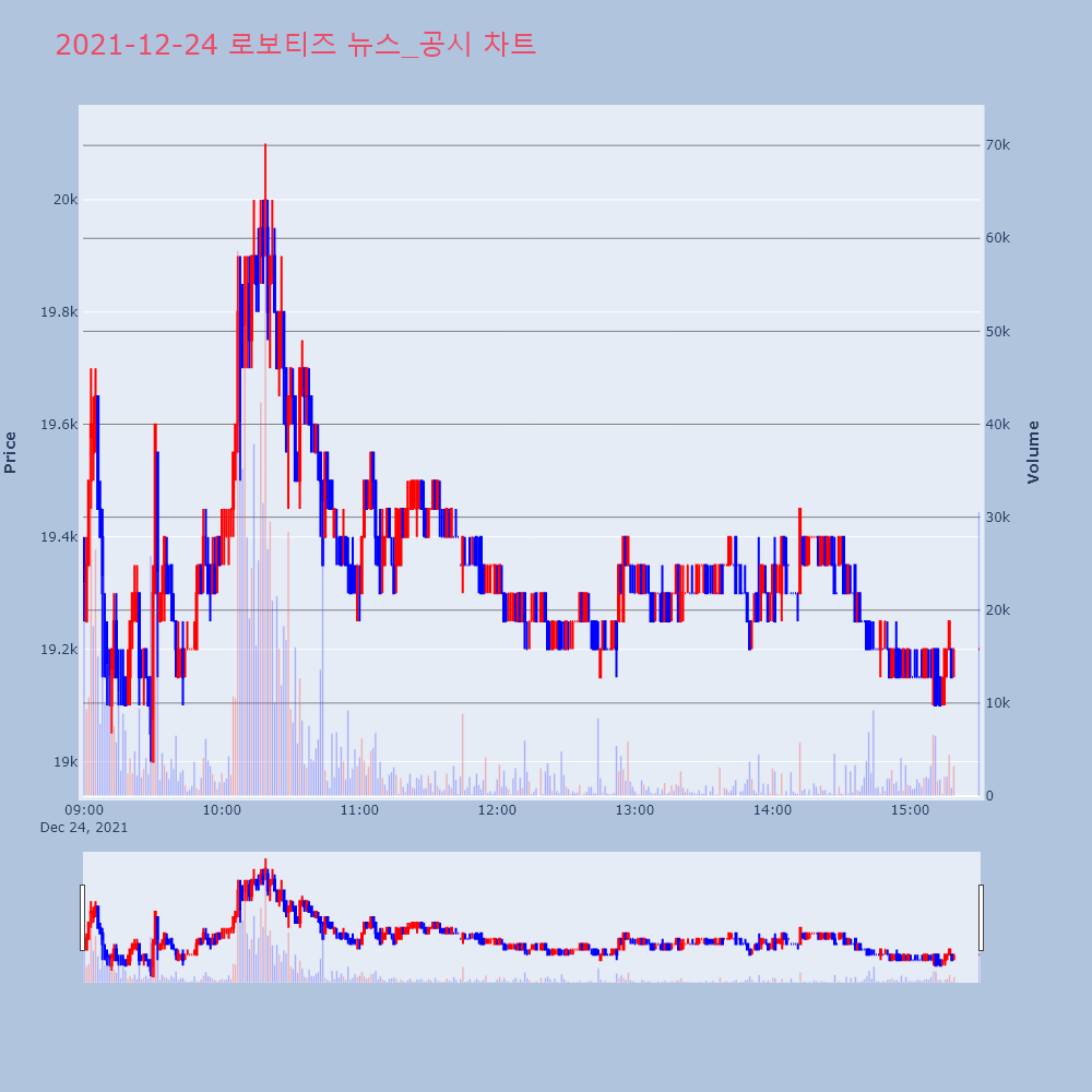 | 9 | 로보로보(215100) +17.23%, 위세아이텍 +12.87%, LG전자 +6.56%, 로보티즈제목 : 로보로보(215100)+17.23%, 위세아이 | 인포스탁 | 로보로보 | 2021-12-23 11:31:29 |