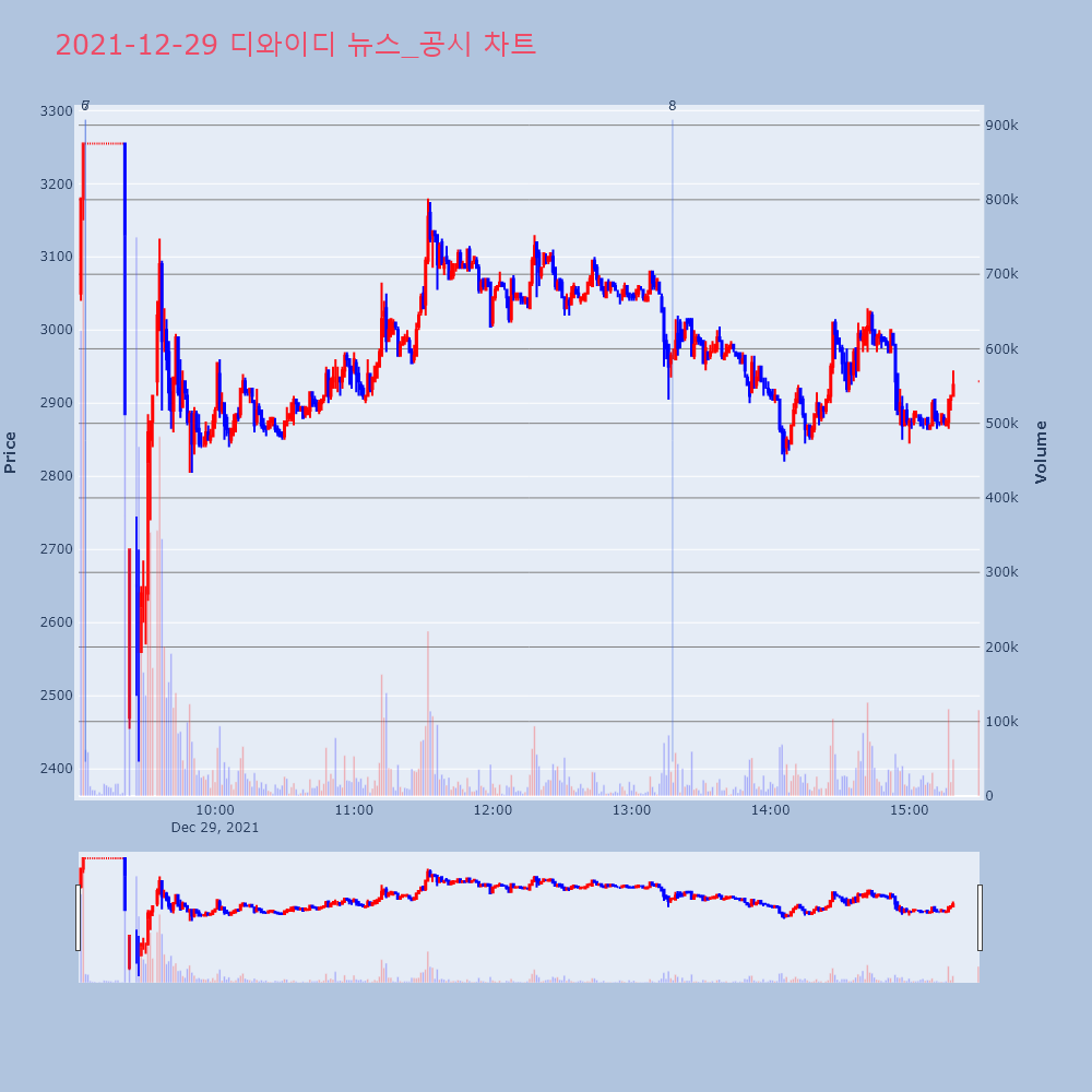 | 4 | [특징주] 디와이디, 매매거래 정지 해제 첫날 '상한가' 제목 : [특징주] 디와이디, 매매거래 정지 해제 첫날 | 인포스탁 | 디와이디 | 2021-12-28 09:17:09 |