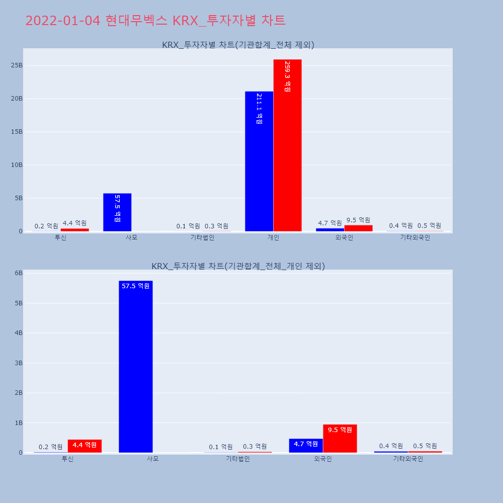 | 투자기관 | 거래량_매도 | 거래량_매수 | 거래량_순매수 | 거래대금_매도 | 거래대금_매수 | 거래대금_순매수 |