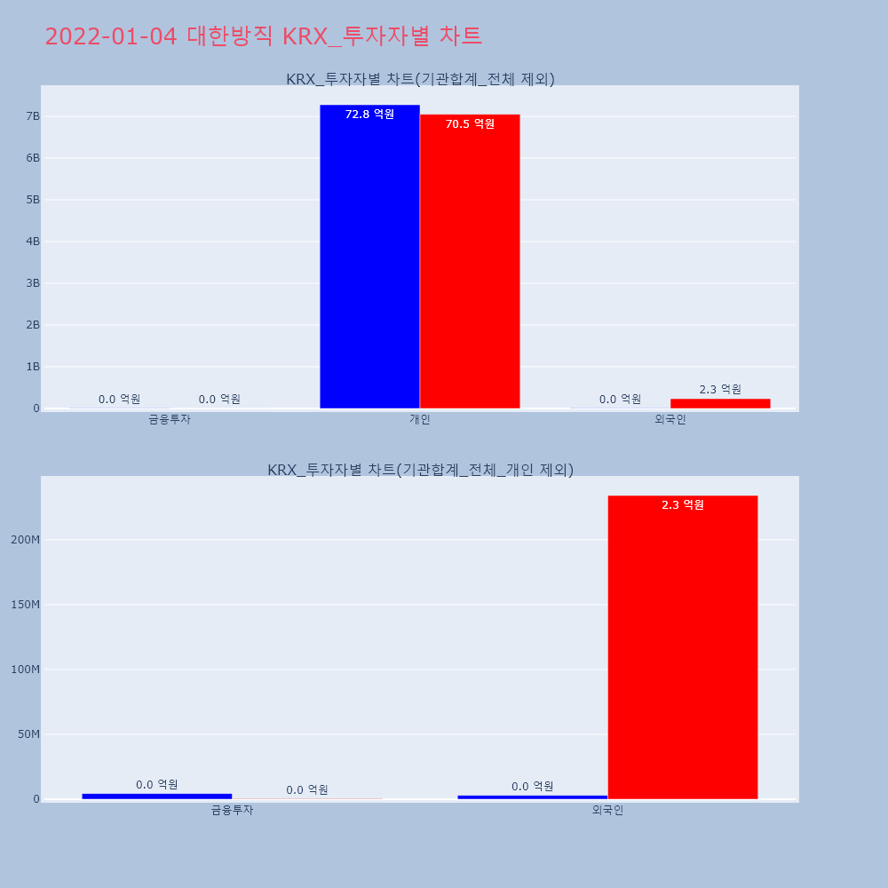 | 투자기관 | 거래량_매도 | 거래량_매수 | 거래량_순매수 | 거래대금_매도 | 거래대금_매수 | 거래대금_순매수 |