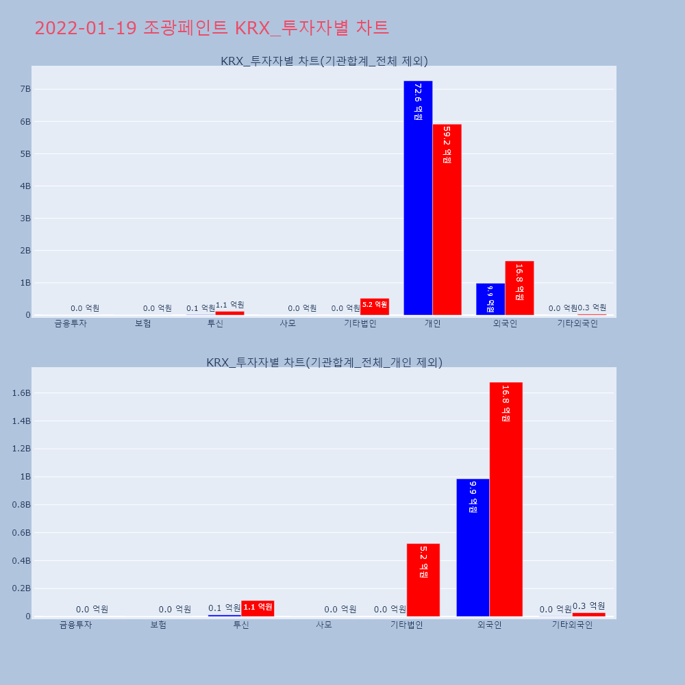 | 투자기관 | 거래량_매도 | 거래량_매수 | 거래량_순매수 | 거래대금_매도 | 거래대금_매수 | 거래대금_순매수 |