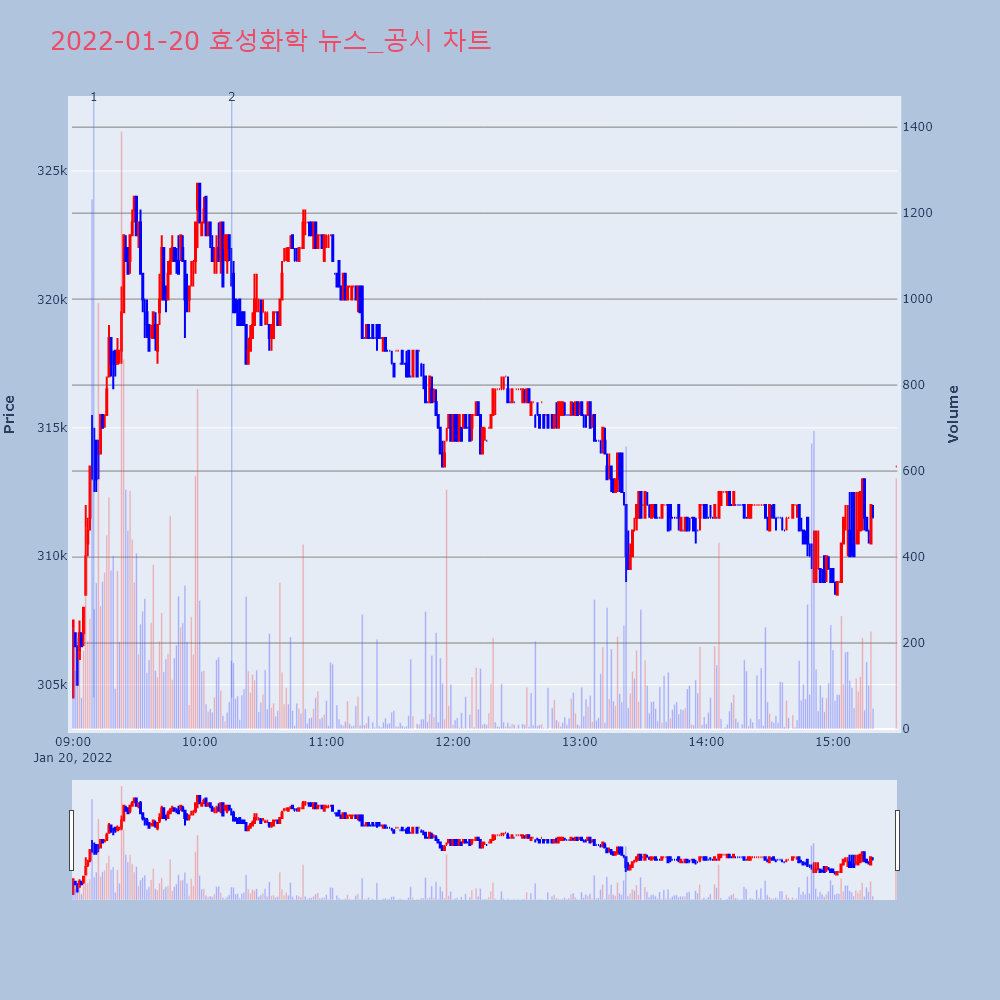| 2 | [리포트 브리핑]효성화학, '2022 년, 베트남 PP 실적 개선으로 증익 기대' [서울=뉴스핌] 로보뉴스 = 이베스트투자증권에서 20일 | 뉴스핌 | 효성화학 | 2022-01-20 10:15:12 |