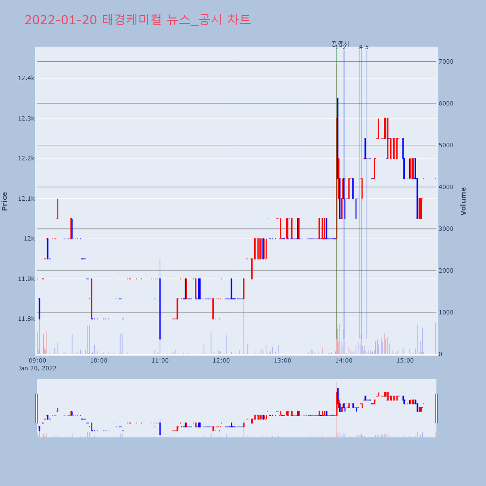 | 5 | 태경케미컬, 주당 220원 현금배당 결정 [헤럴드경제=증권부] 태경케미컬은 보통주 1주당 220 | 헤럴드경제 | 태경케미컬 | 2022-01-20 14:22:34 |