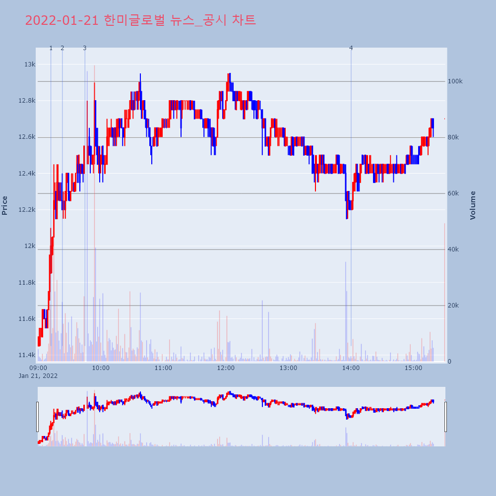 | 4 | [생생한 주식쇼 생쇼] 한미글로벌 (053690) [생생한 주식쇼 생쇼] 한미글로벌 (053690)[ⓒ | 매일경제 | 한미글로벌 | 2022-01-21 14:00:16 |