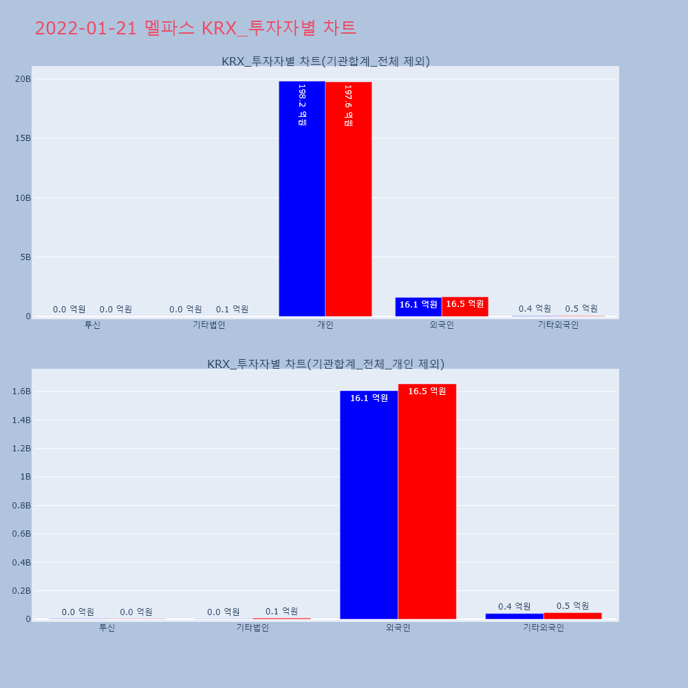 | 기관합계 | 5,688 | 410 | -5,278 | 269,445,100 | 21,239,000 | -248,206,100 |