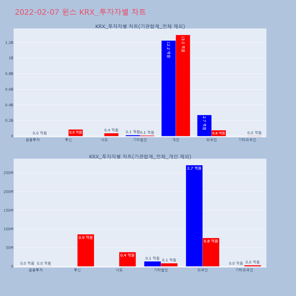| 투자기관 | 거래량_매도 | 거래량_매수 | 거래량_순매수 | 거래대금_매도 | 거래대금_매수 | 거래대금_순매수 |