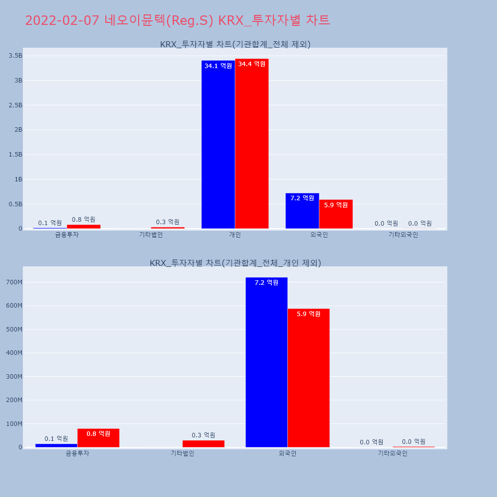 | 외국인 | 21,377 | 9,521 | -11,856 | 252,736,100 | 113,227,700 | -139,508,400 |
