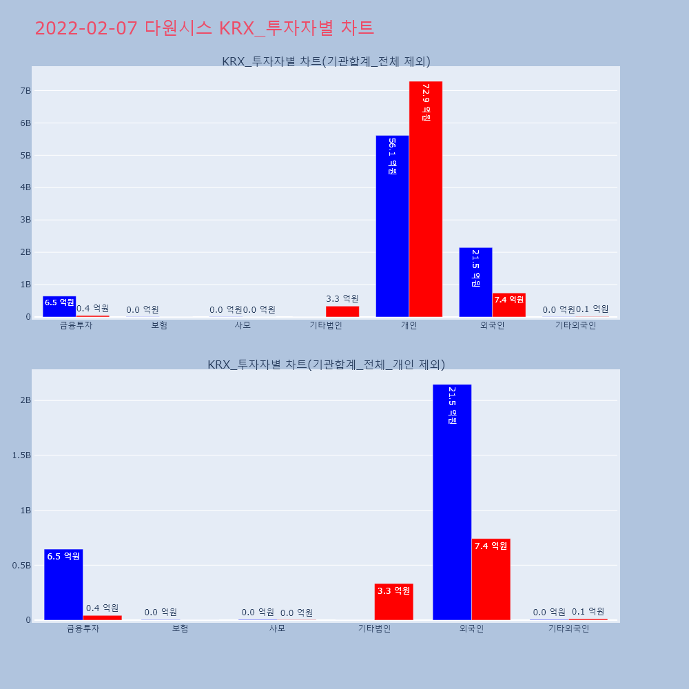 | 투자기관 | 거래량_매도 | 거래량_매수 | 거래량_순매수 | 거래대금_매도 | 거래대금_매수 | 거래대금_순매수 |