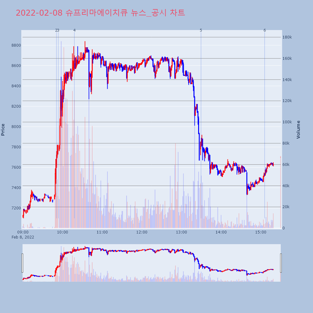 | 2022-02-08 09:43:00 | 20220208800104 | 매출액또는손익구조30%(대규모법인은15%)이상변경 |