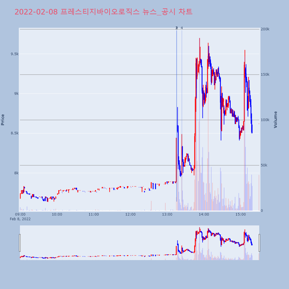 | 3 | 프레스티지바이오로직스(334970) 상승폭 확대 +7.88% 제목 : 프레스티지바이오로직스(334970)상승폭 확대 | 인포스탁 | 프레스티지바이오로직스 | 2022-02-08 13:15:51 |
