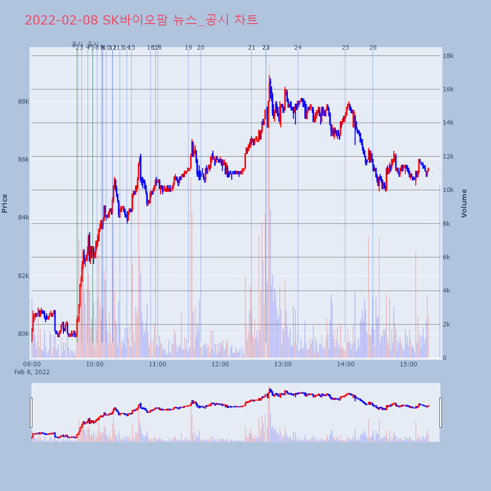 | 29 | [특징주]'호실적 공시' SK바이오팜 급등 제목 : [특징주]'호실적 공시' SK바이오팜 급등[미 | 인포스탁 | SK바이오팜 | 2022-02-08 16:17:49 |