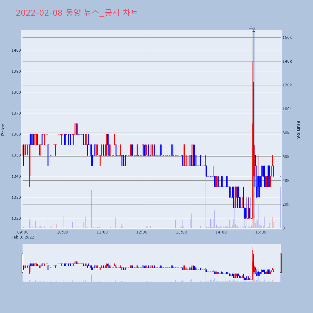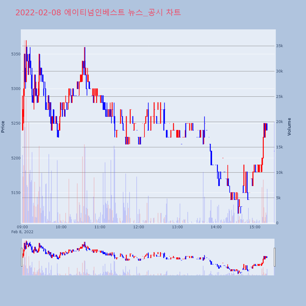 2022-02-08 16:42:00 | 20220208800777 | 매출액또는손익구조30%(대규모법인은15%)이상변경 |