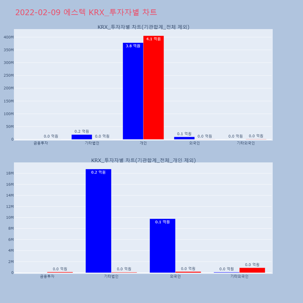 | 투자기관 | 거래량_매도 | 거래량_매수 | 거래량_순매수 | 거래대금_매도 | 거래대금_매수 | 거래대금_순매수 |