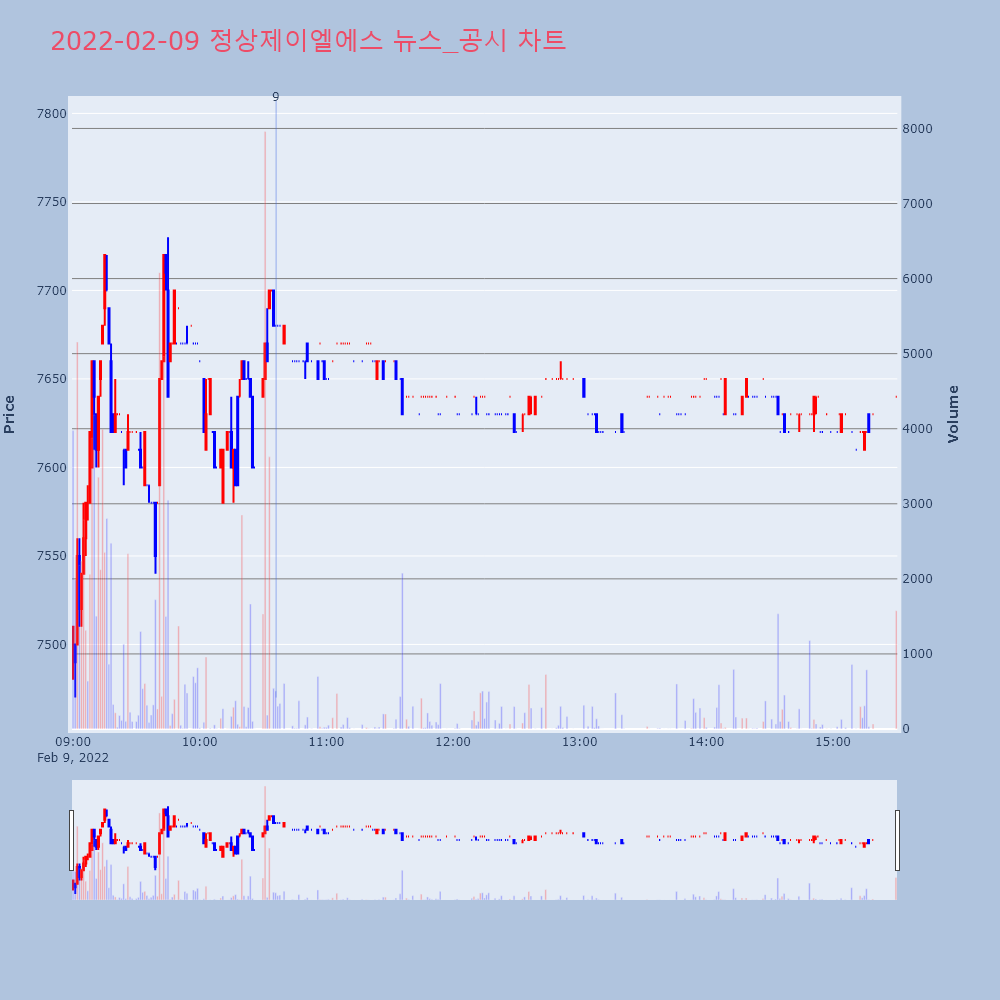 | 7 | 정상제이엘에스, +9.91% VI 발동정상제이엘에스(040420)가 VI가 발동했다. 전일 | 조선경제 | 정상제이엘에스 | 2022-02-08 14:26:23 |